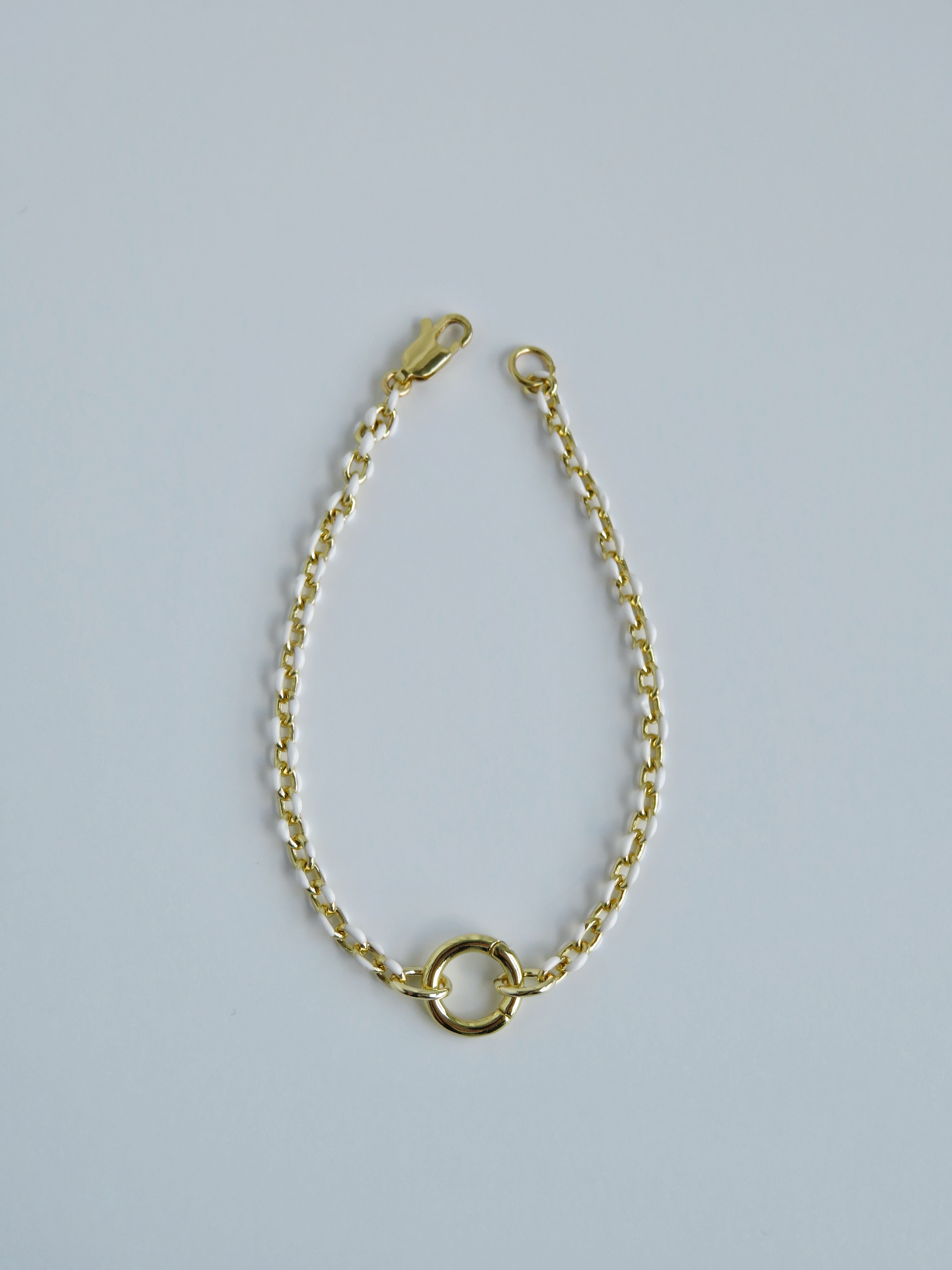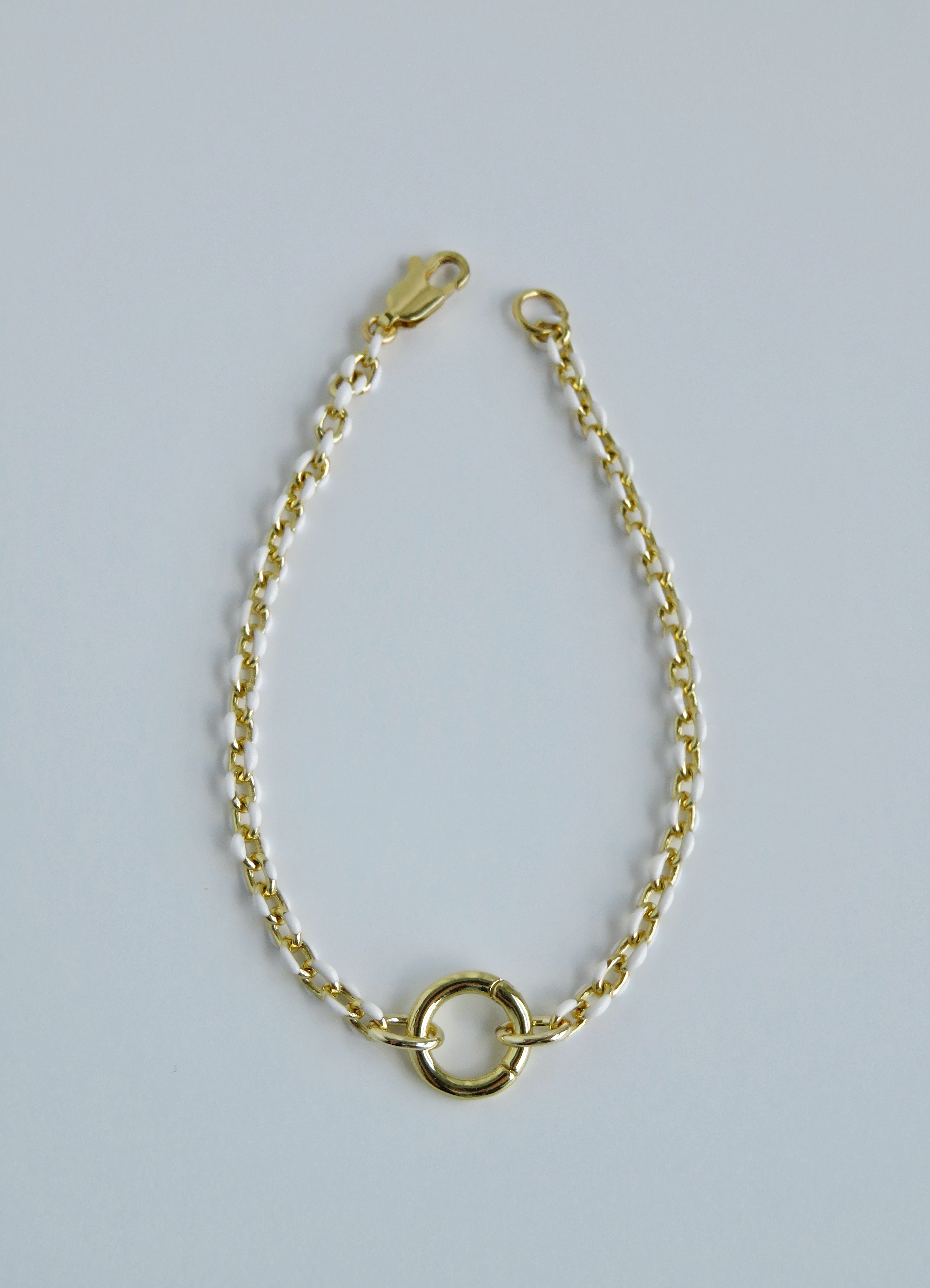 - Handcrafted Blanc Links - White Enamel and 16K Gold layered Figaro link bracelet