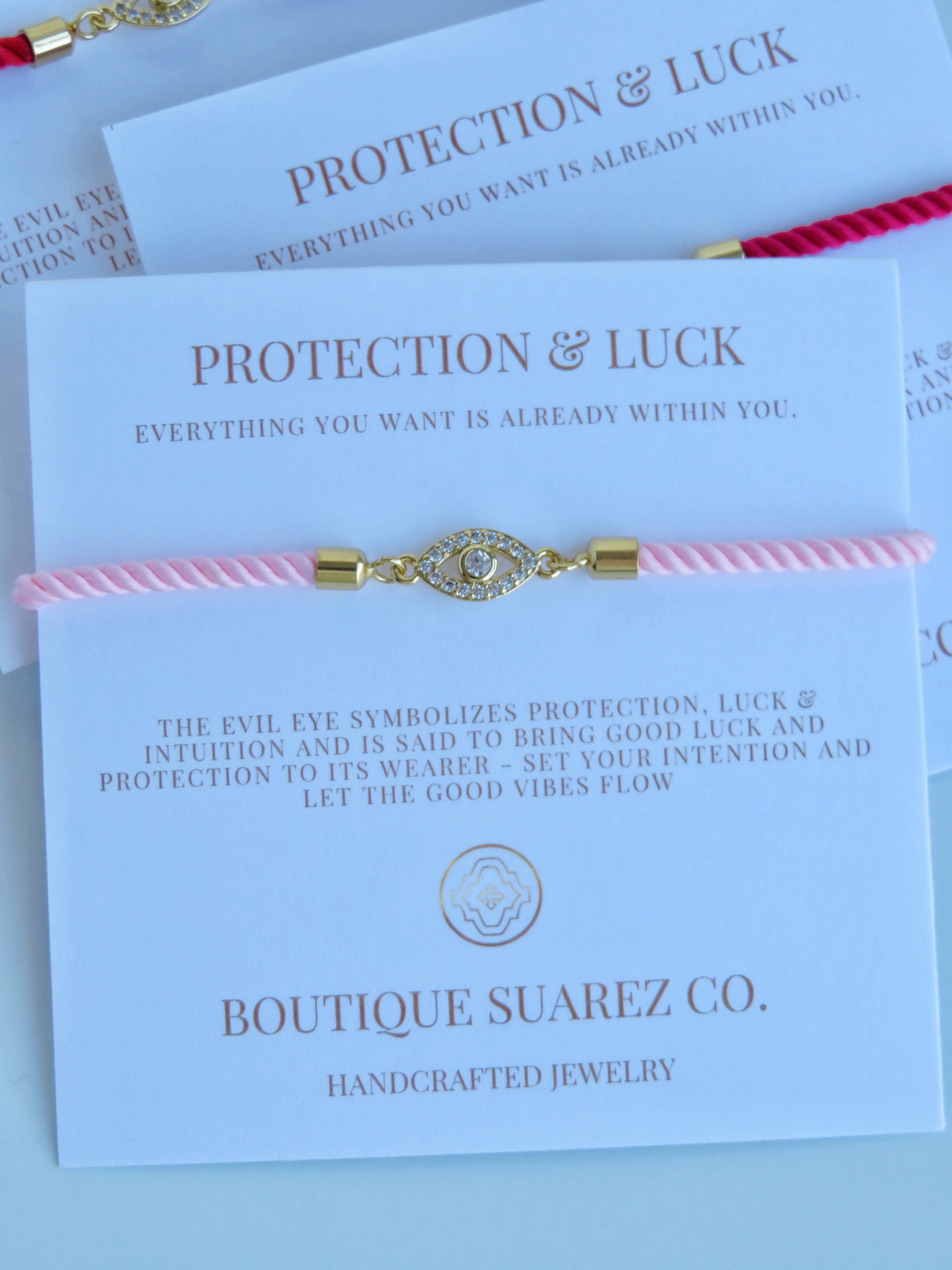 Diamond Evil Eye Silk Cord Bracelet on our meaningful symbolic card - Luck & Protection