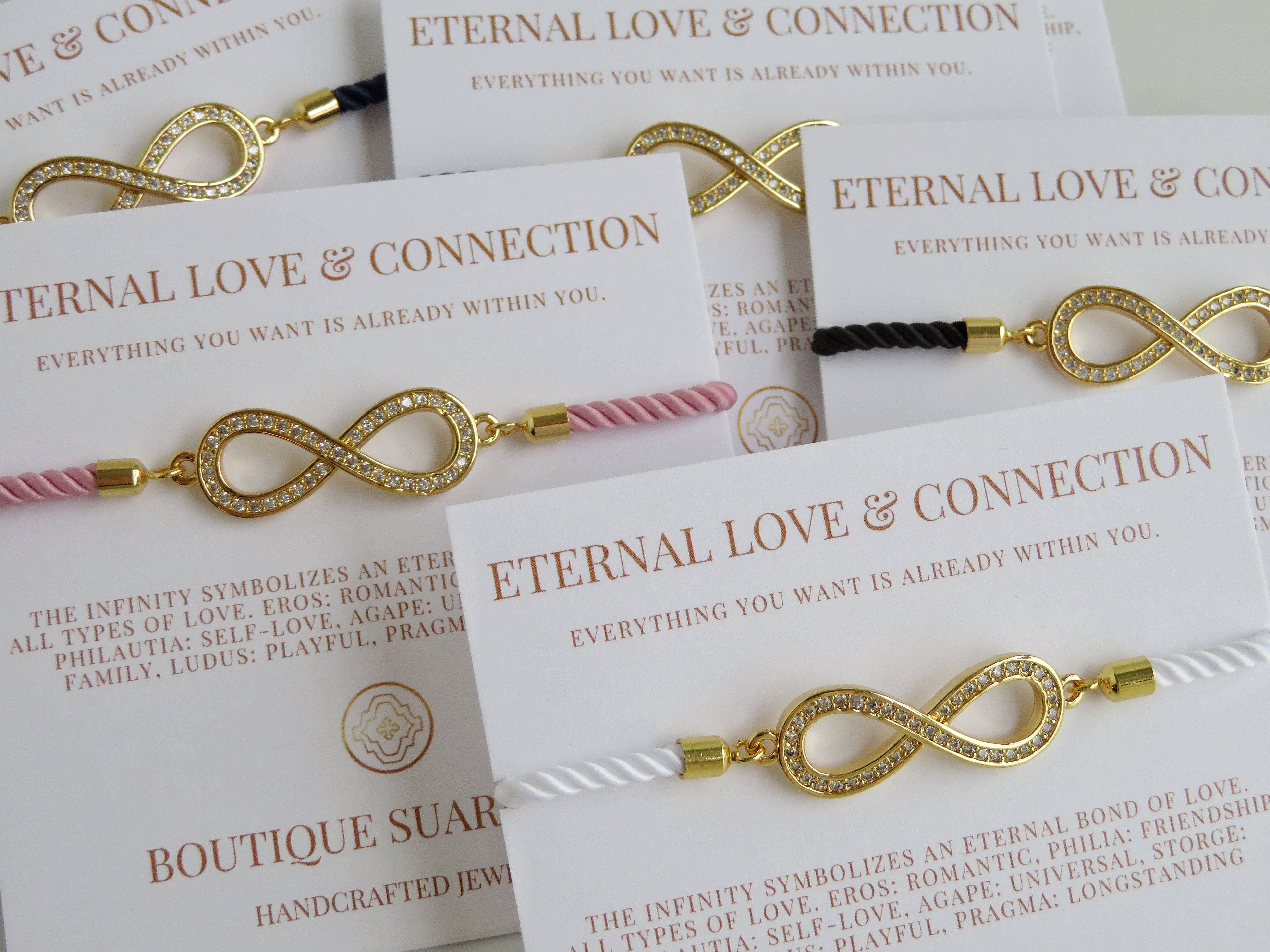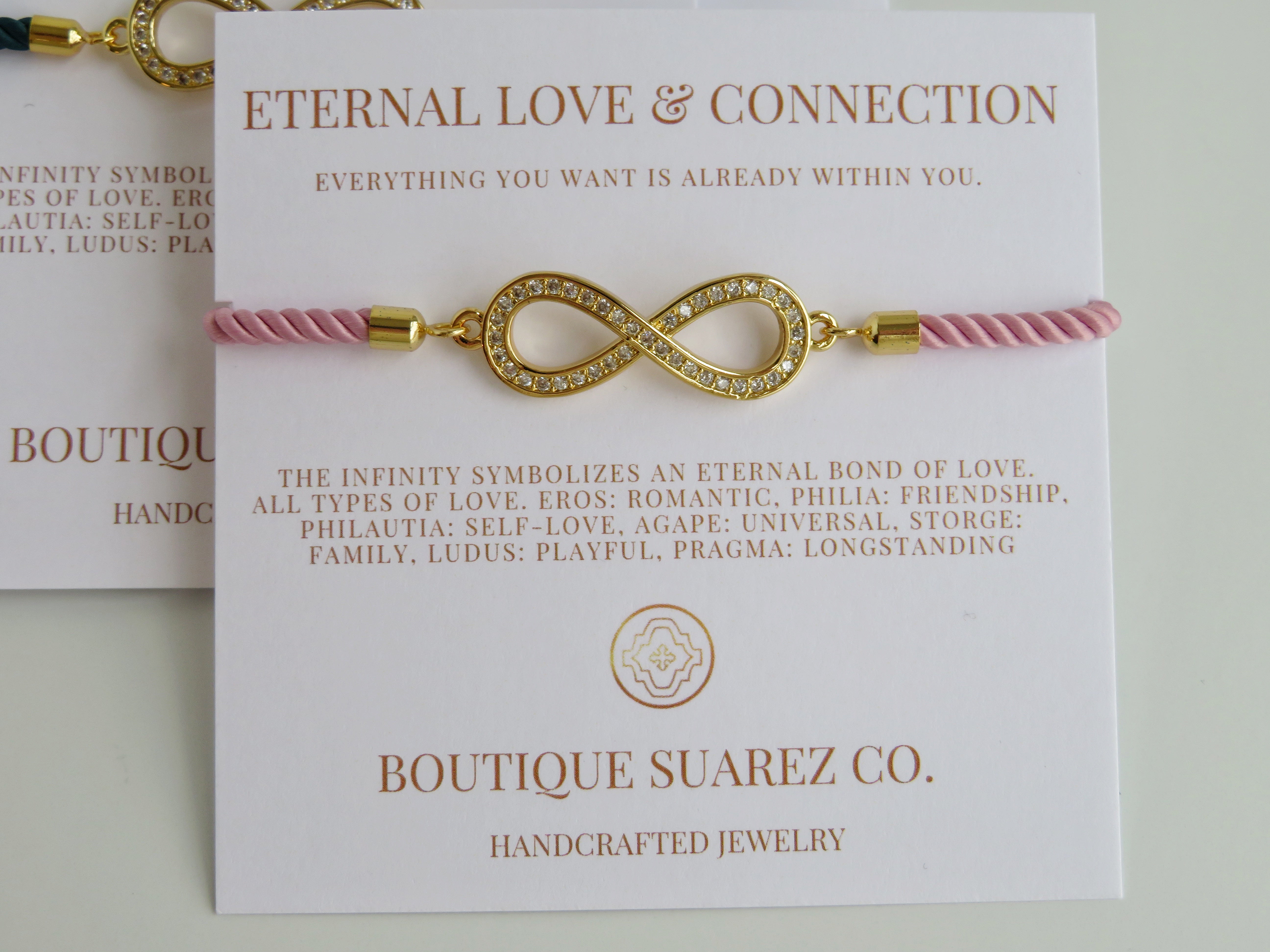 THE INFINITY SYMBOLIZES AN ETERNAL BOND OF LOVE. ALL TYPES OF LOVE. EROS: ROMANTIC, PHILIA: FRIENDSHIP. : SELF-LOVE, AGAPE: UNIVERSAL, STORGE: FAMILY, LUDUS: PLAYFUL, PRAGMA: LONGSTANDING