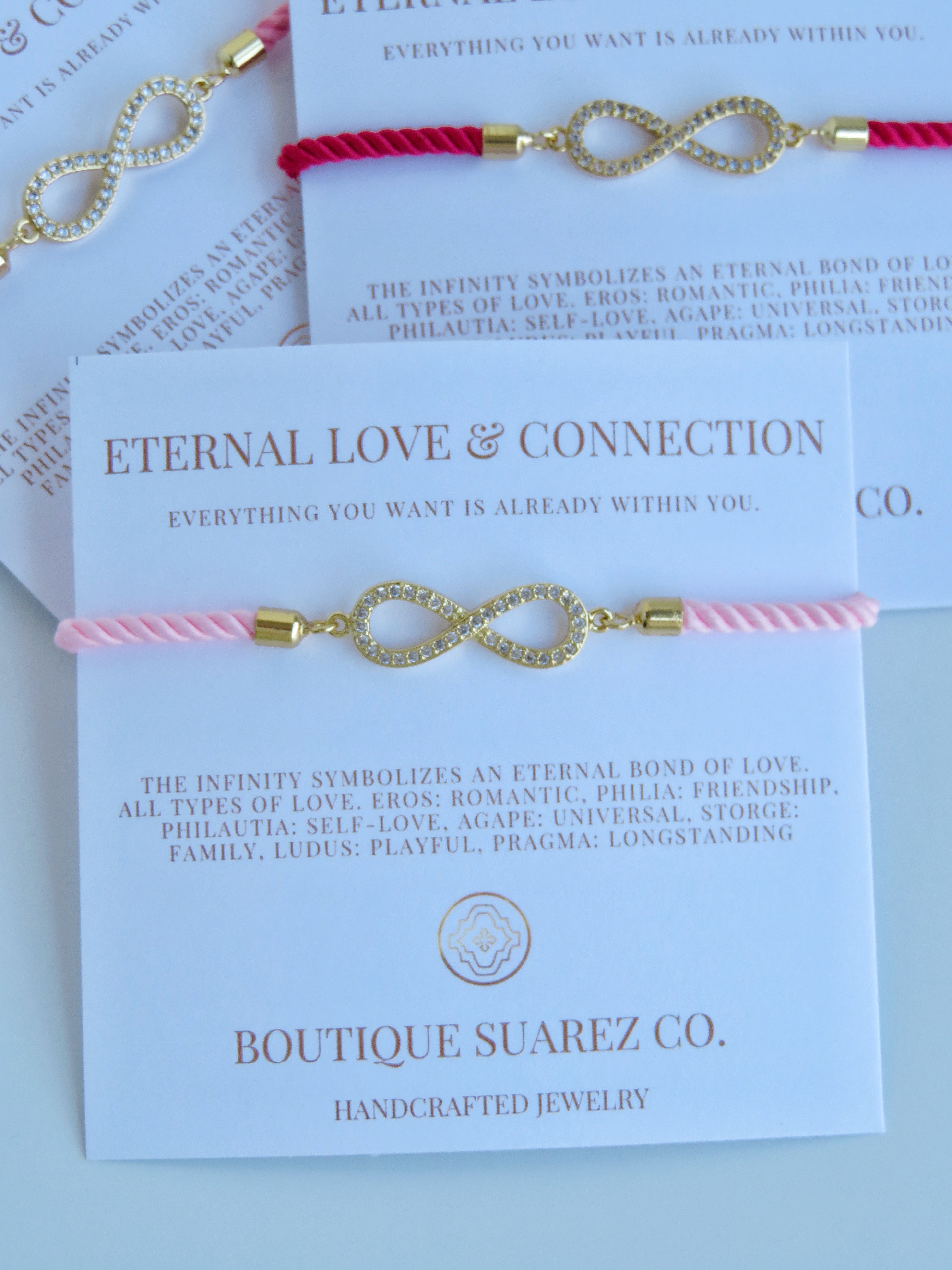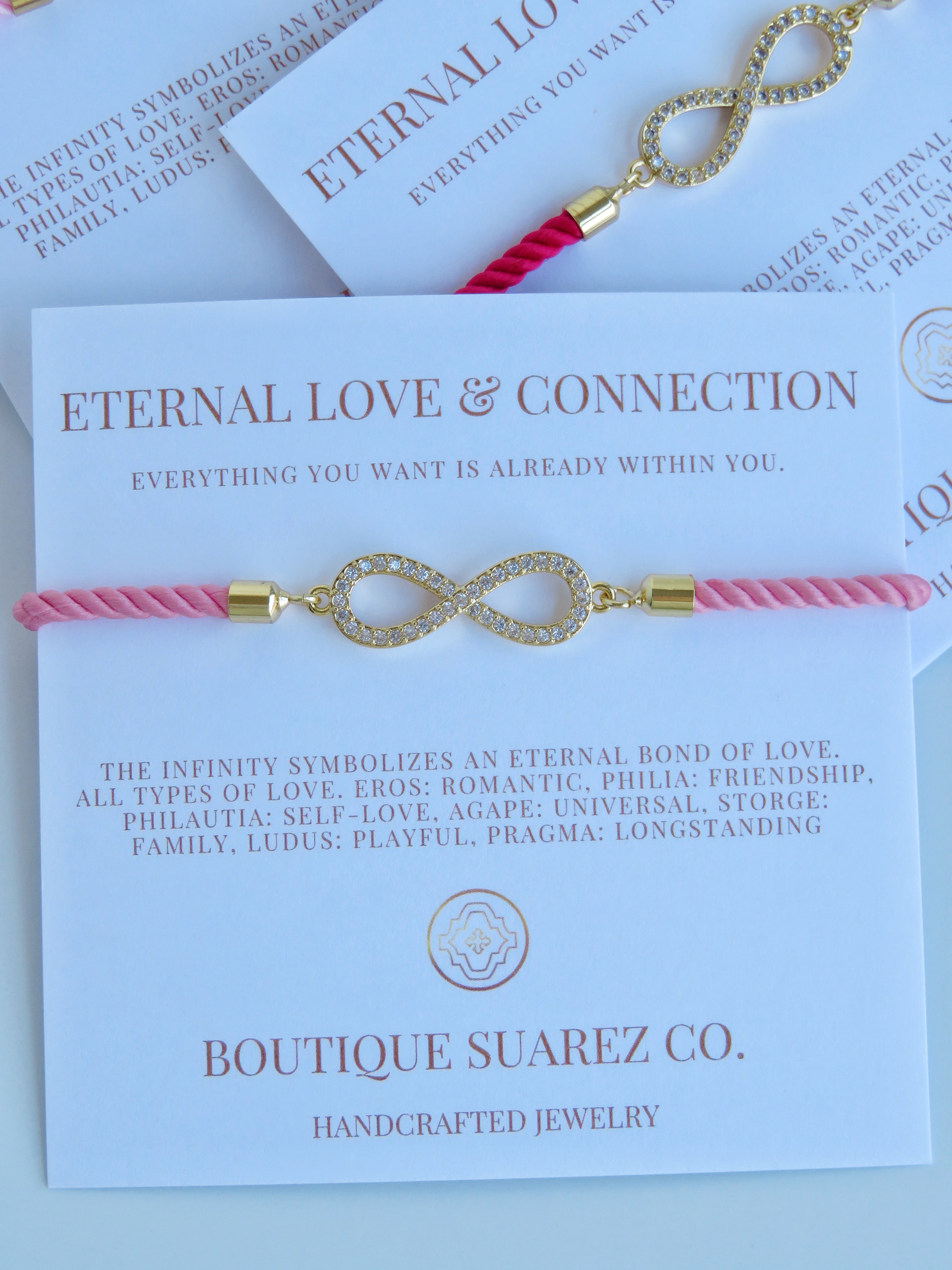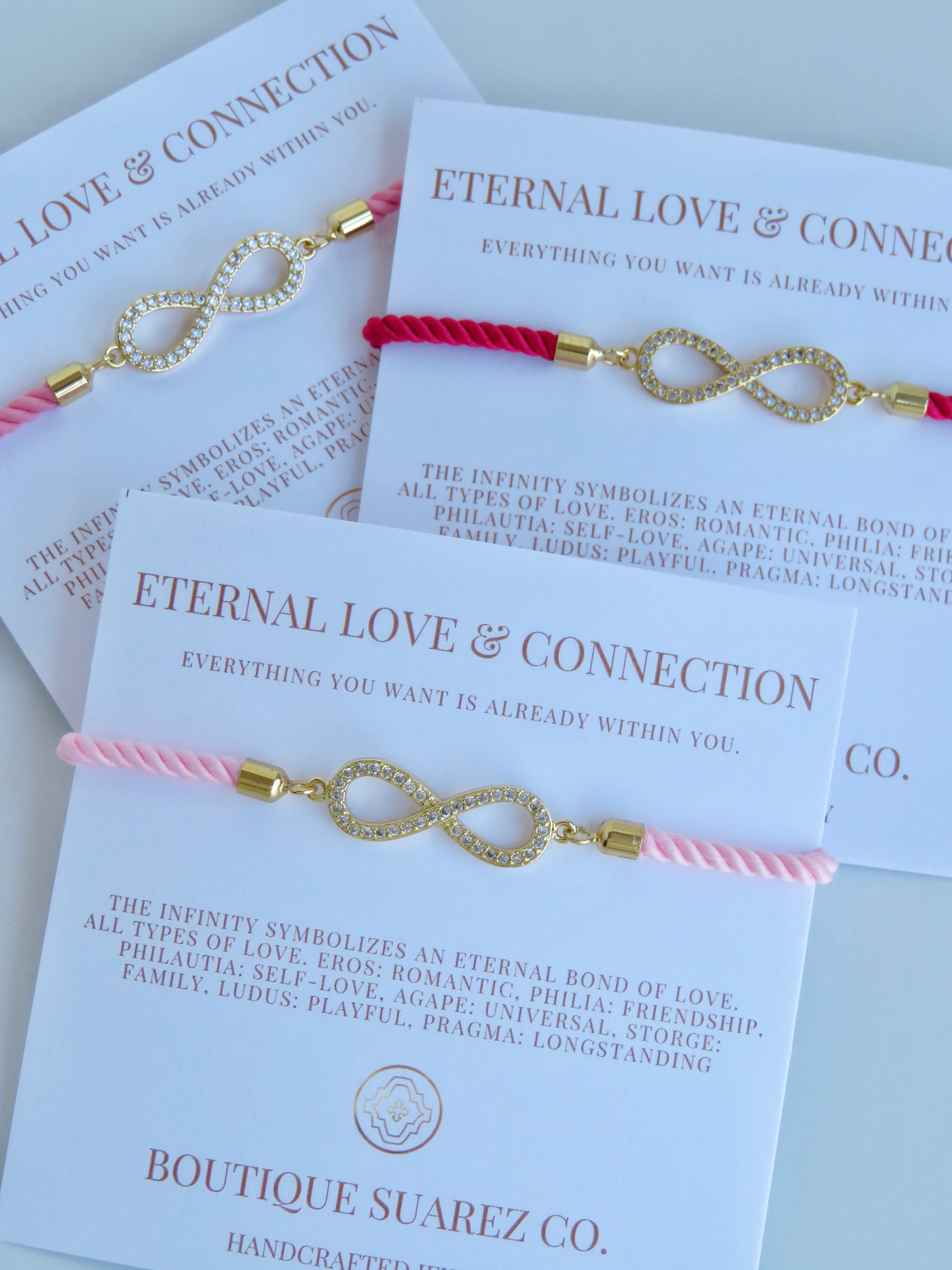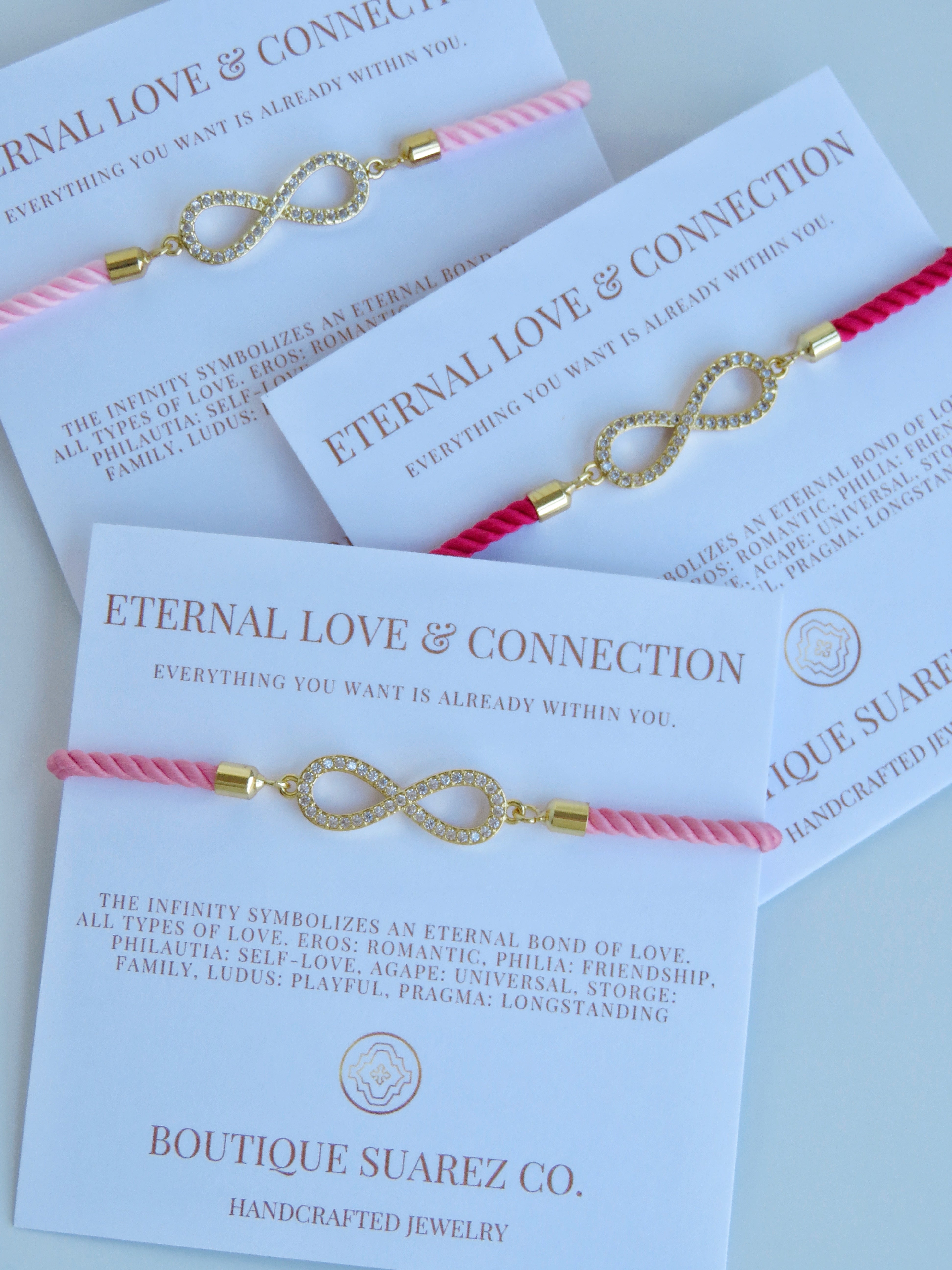 THE INFINITY SYMBOLIZES AN ETERNAL BOND OF LOVE. ALL TYPES OF LOVE. EROS: ROMANTIC, PHILIA: FRIENDSHIP. : SELF-LOVE, AGAPE: UNIVERSAL, STORGE: FAMILY, LUDUS: PLAYFUL, PRAGMA: LONGSTANDING