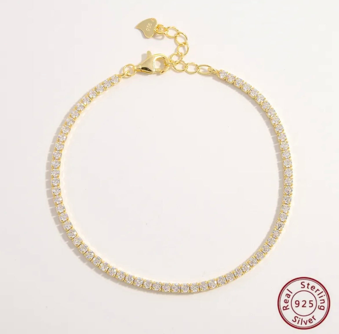 925 Sterling Silver Gold Plated Dainty Diamond Tennis Bracelet
