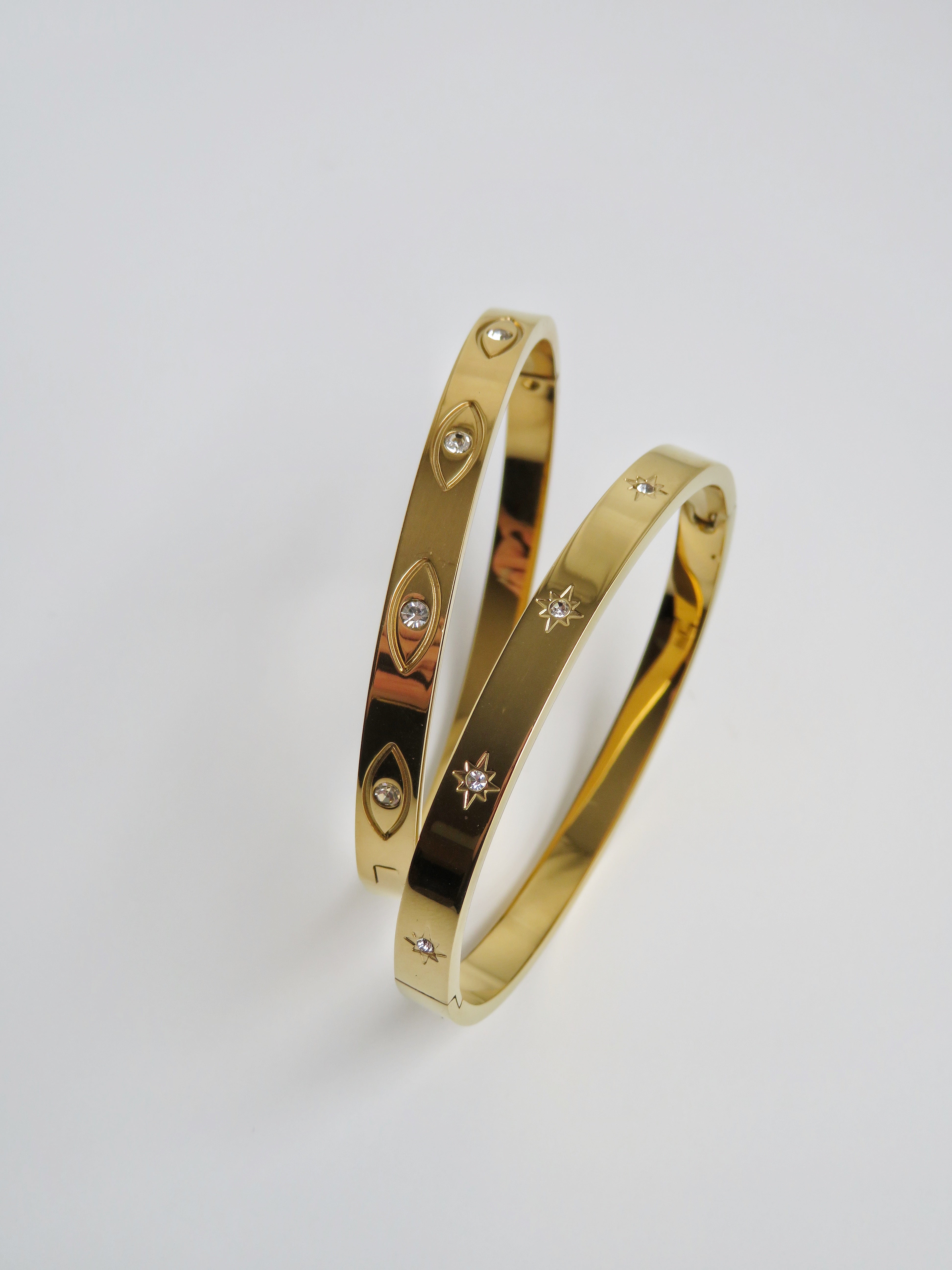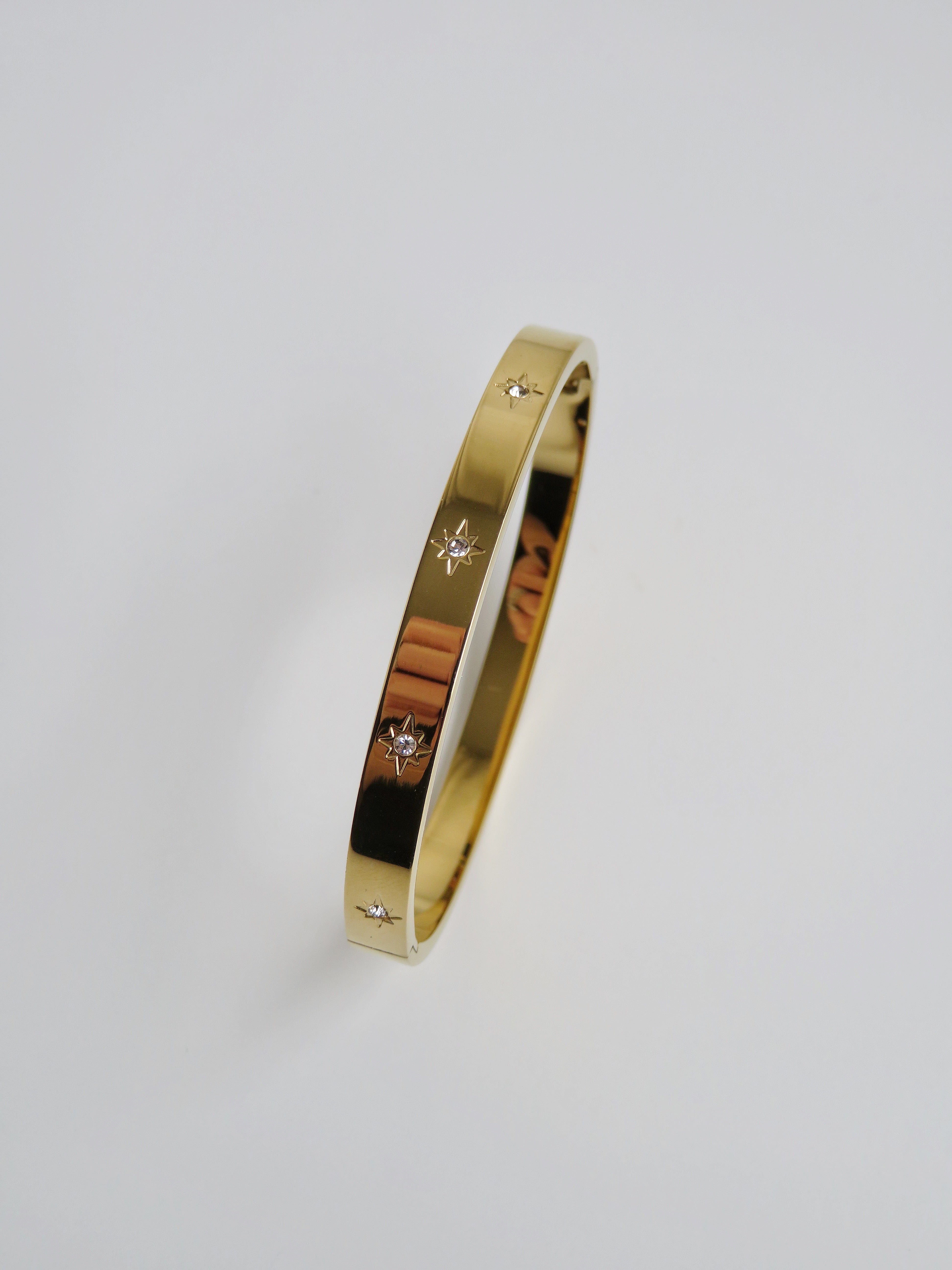 - Star Diamond Oval 2 1/2” wide x 2” - 10 diamond stars are on all sides of the bangle