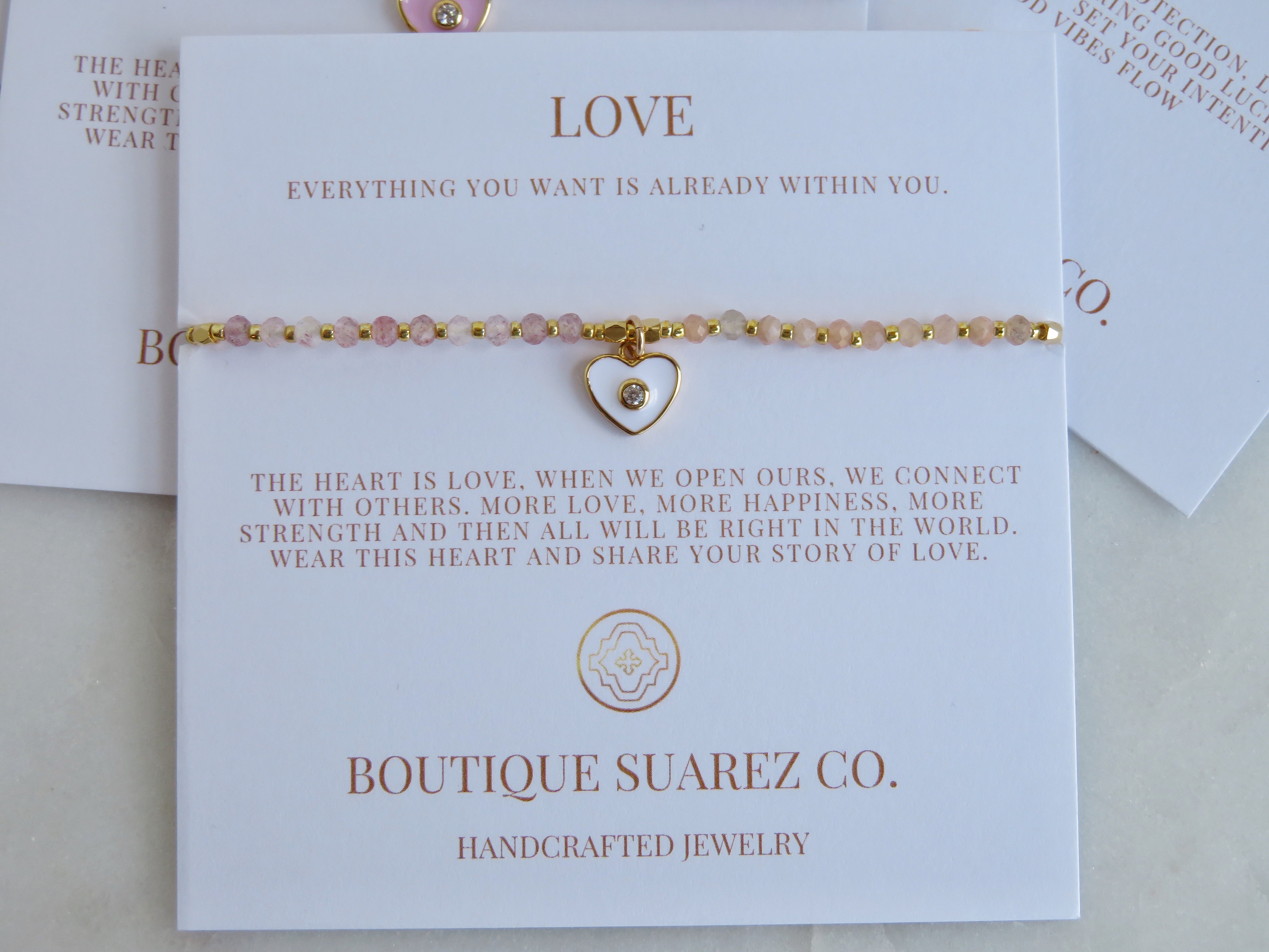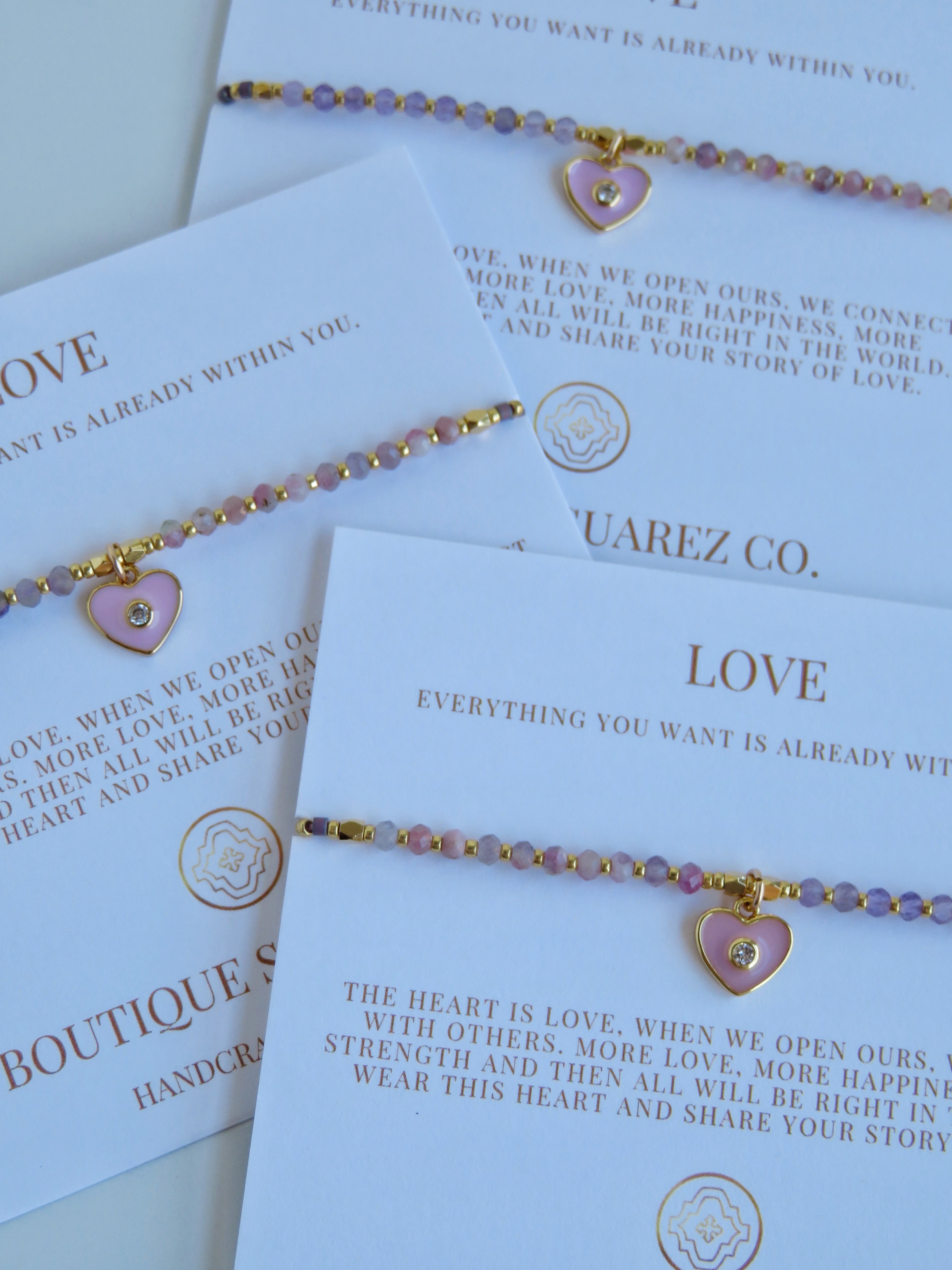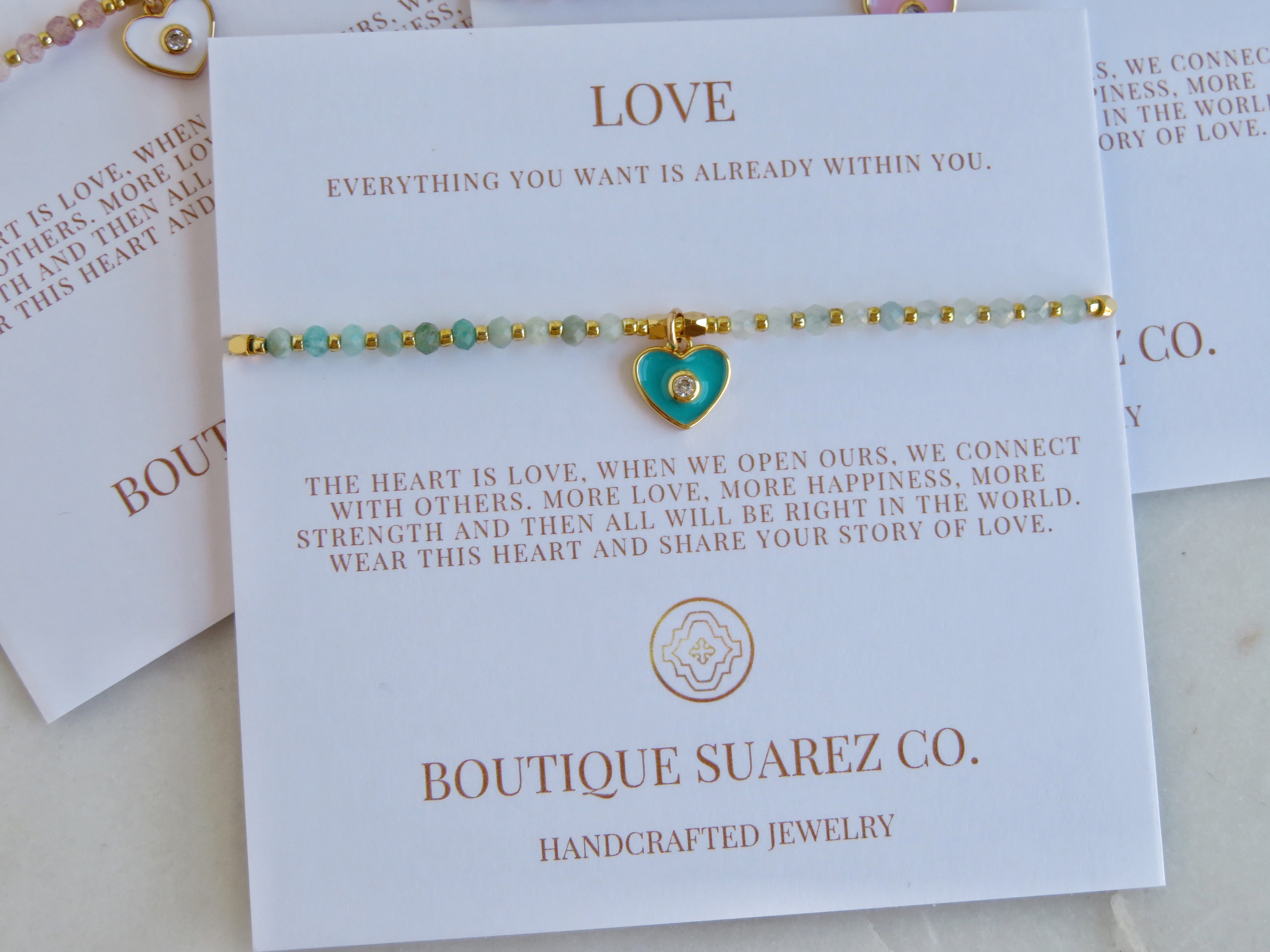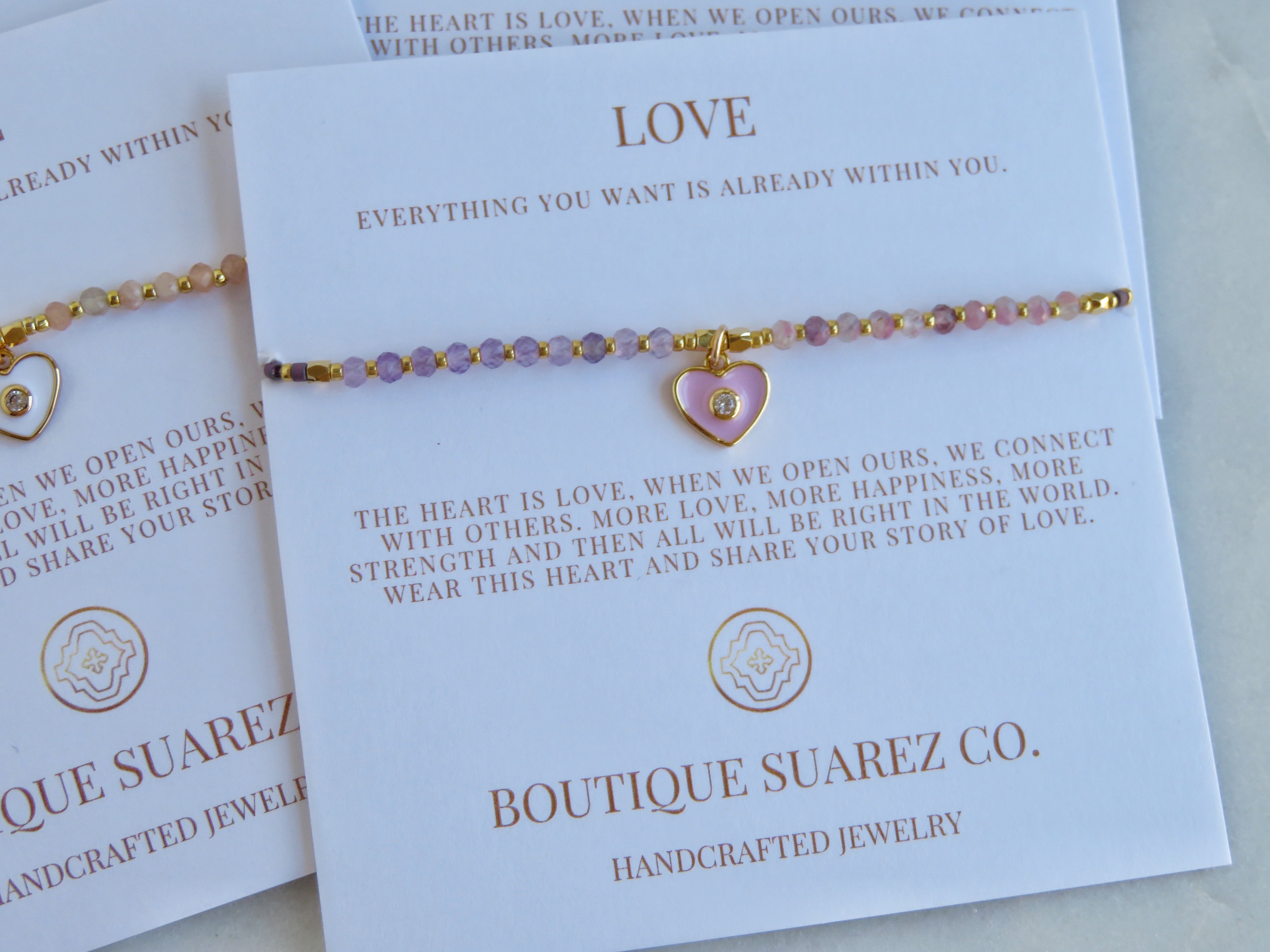 Beaded adjustable cord bracelet with a Enamel Diamond Heart on our beautiful symbolic card - LOVE