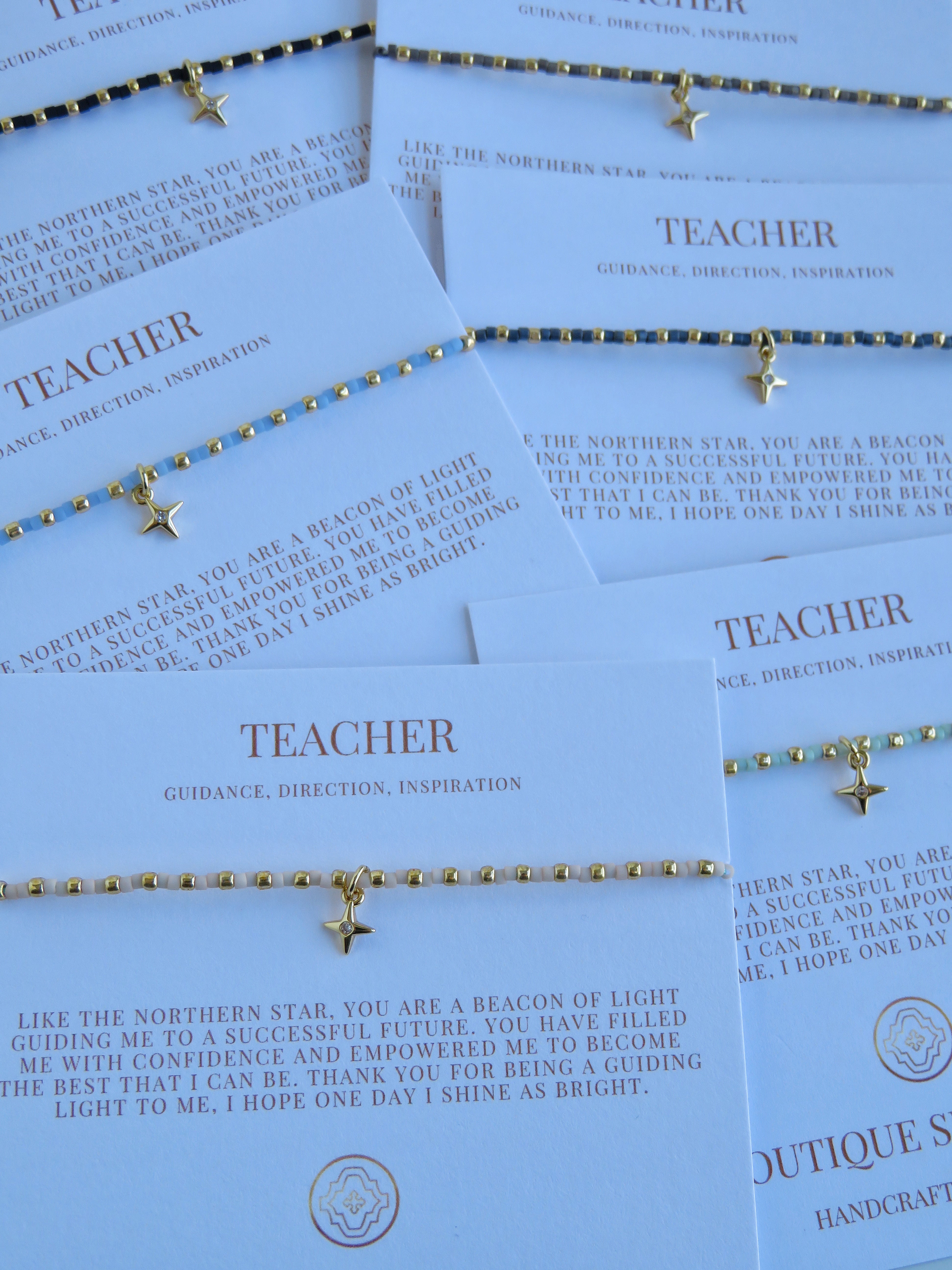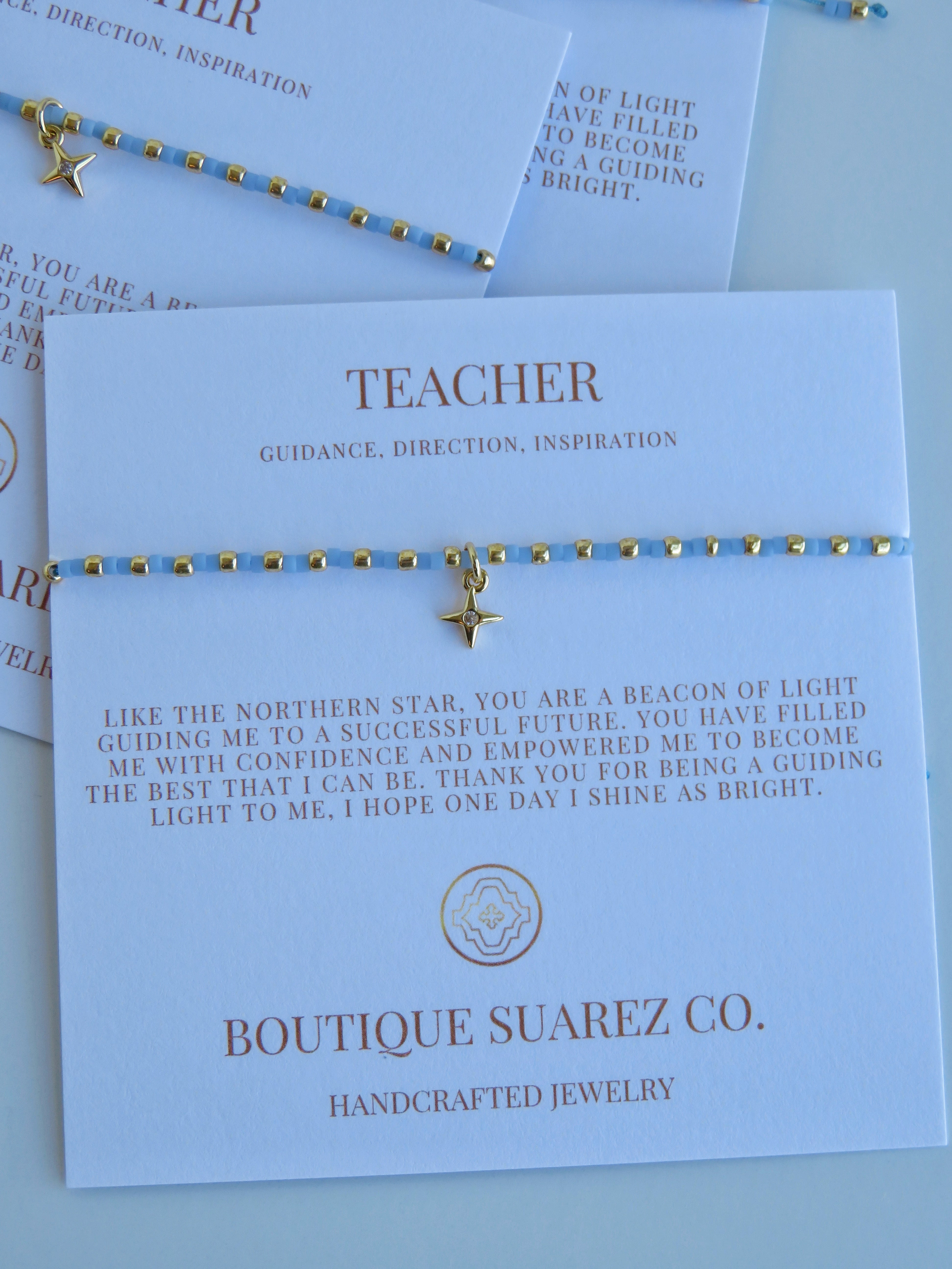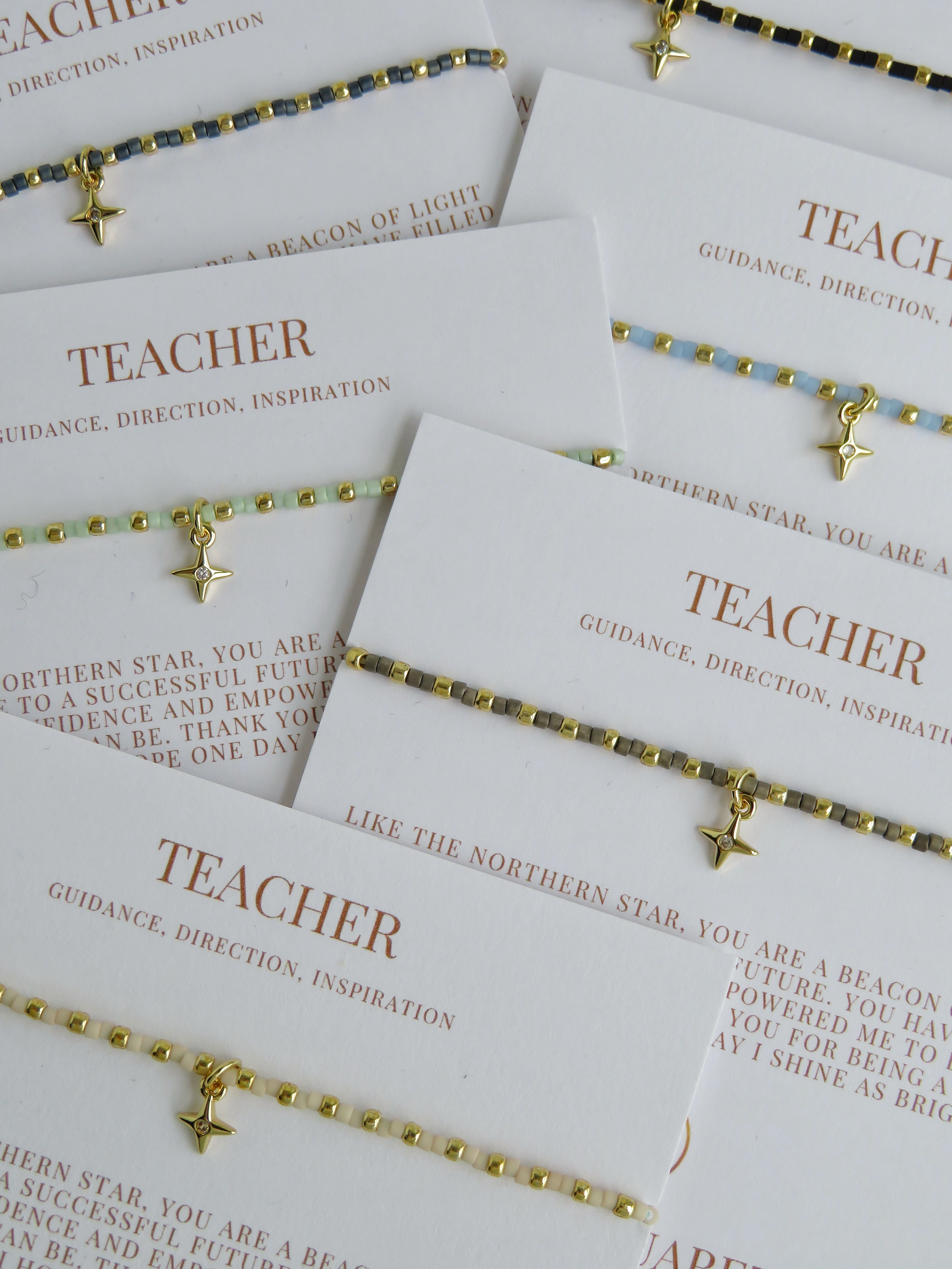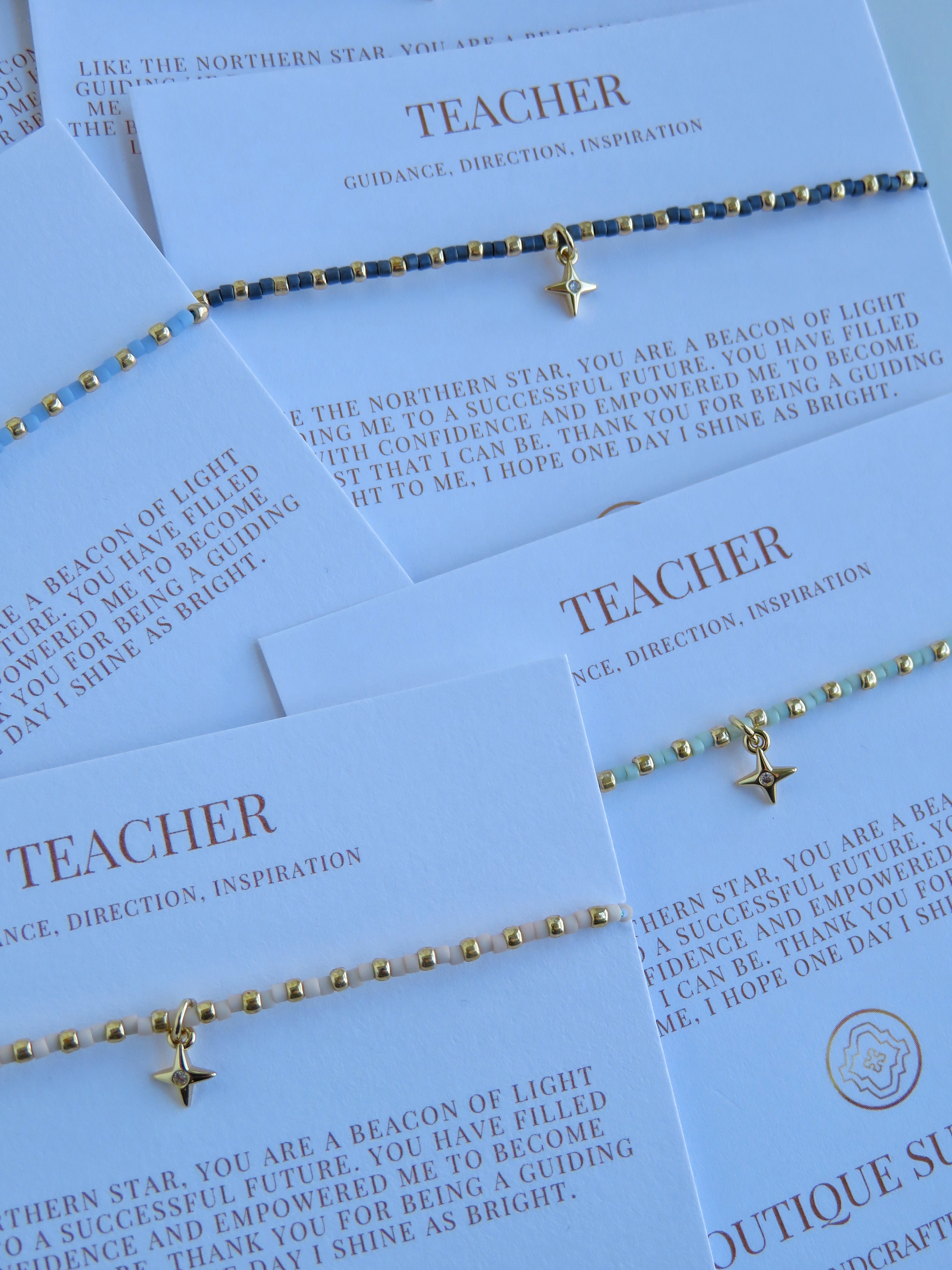 Celebrate Teachers with our Ashlyn Beaded adjustable Northern Star bracelet.