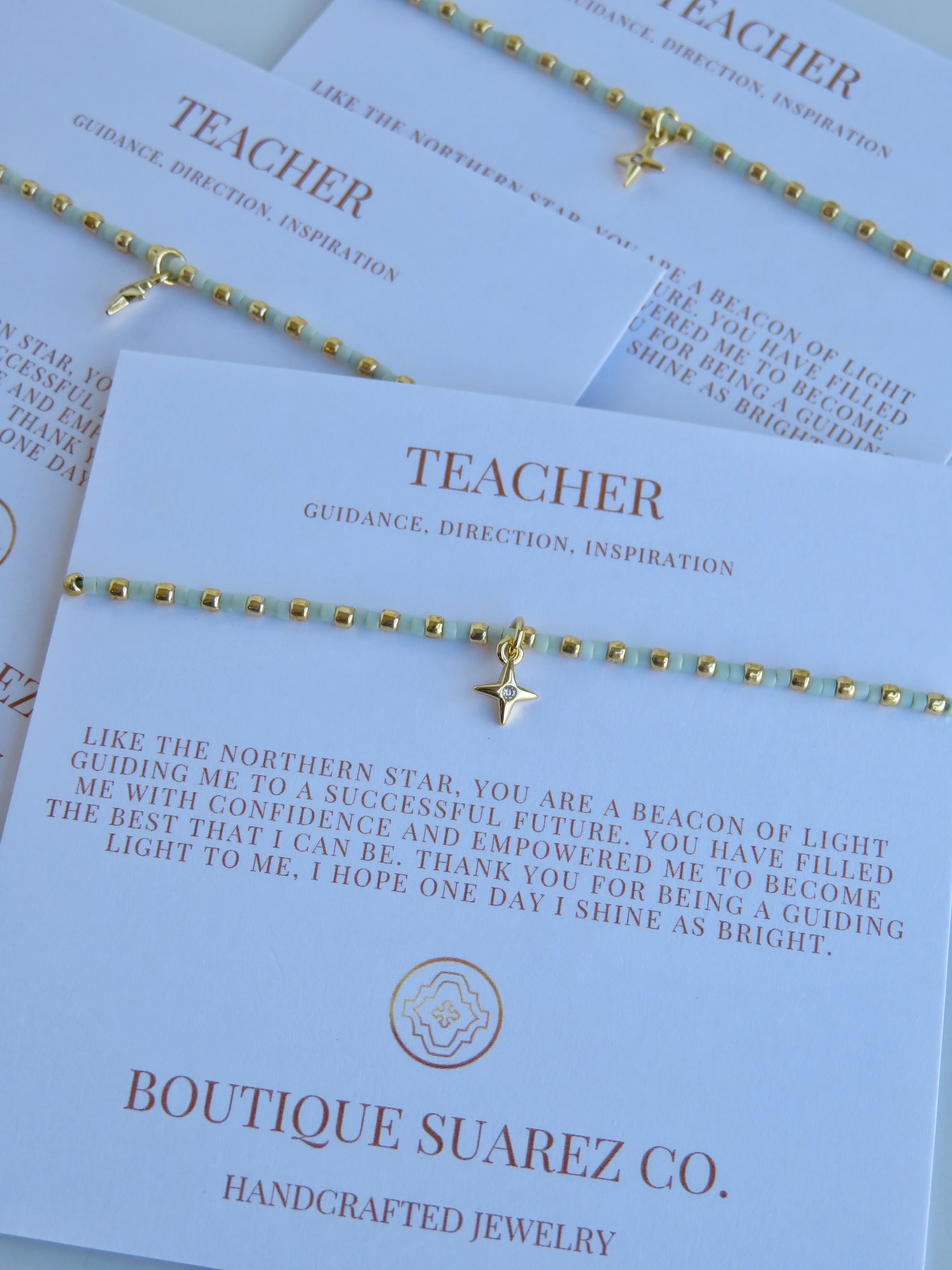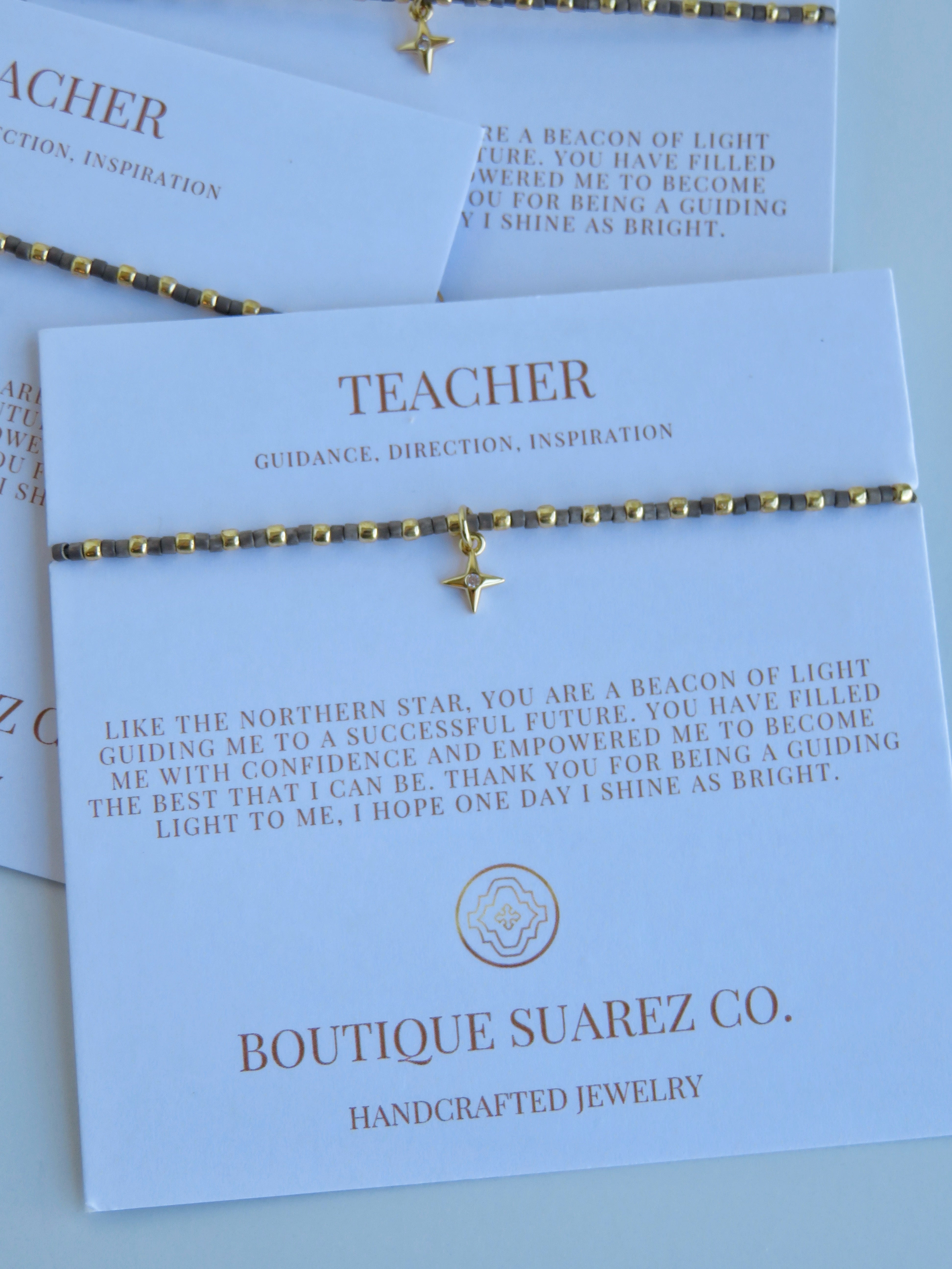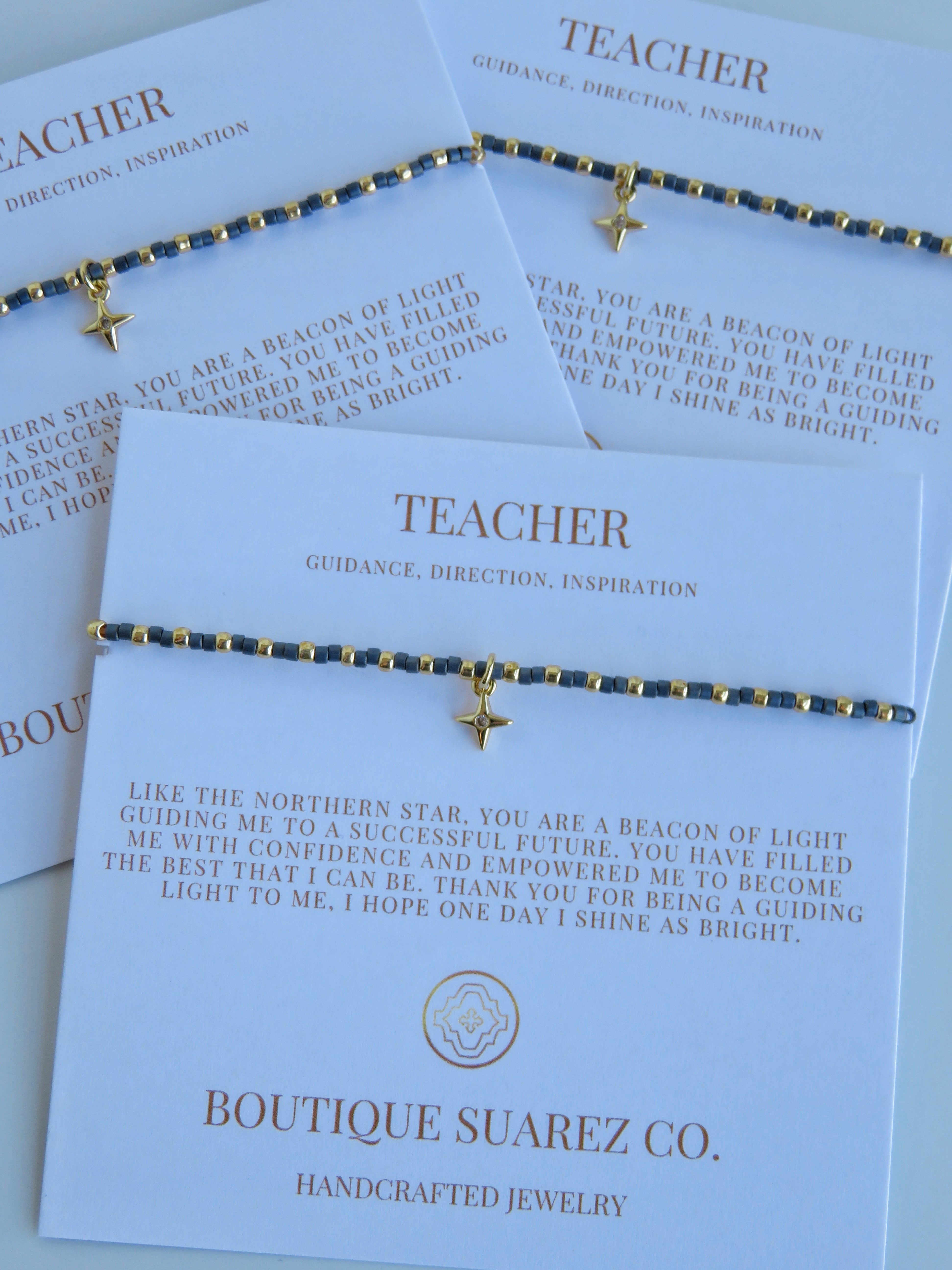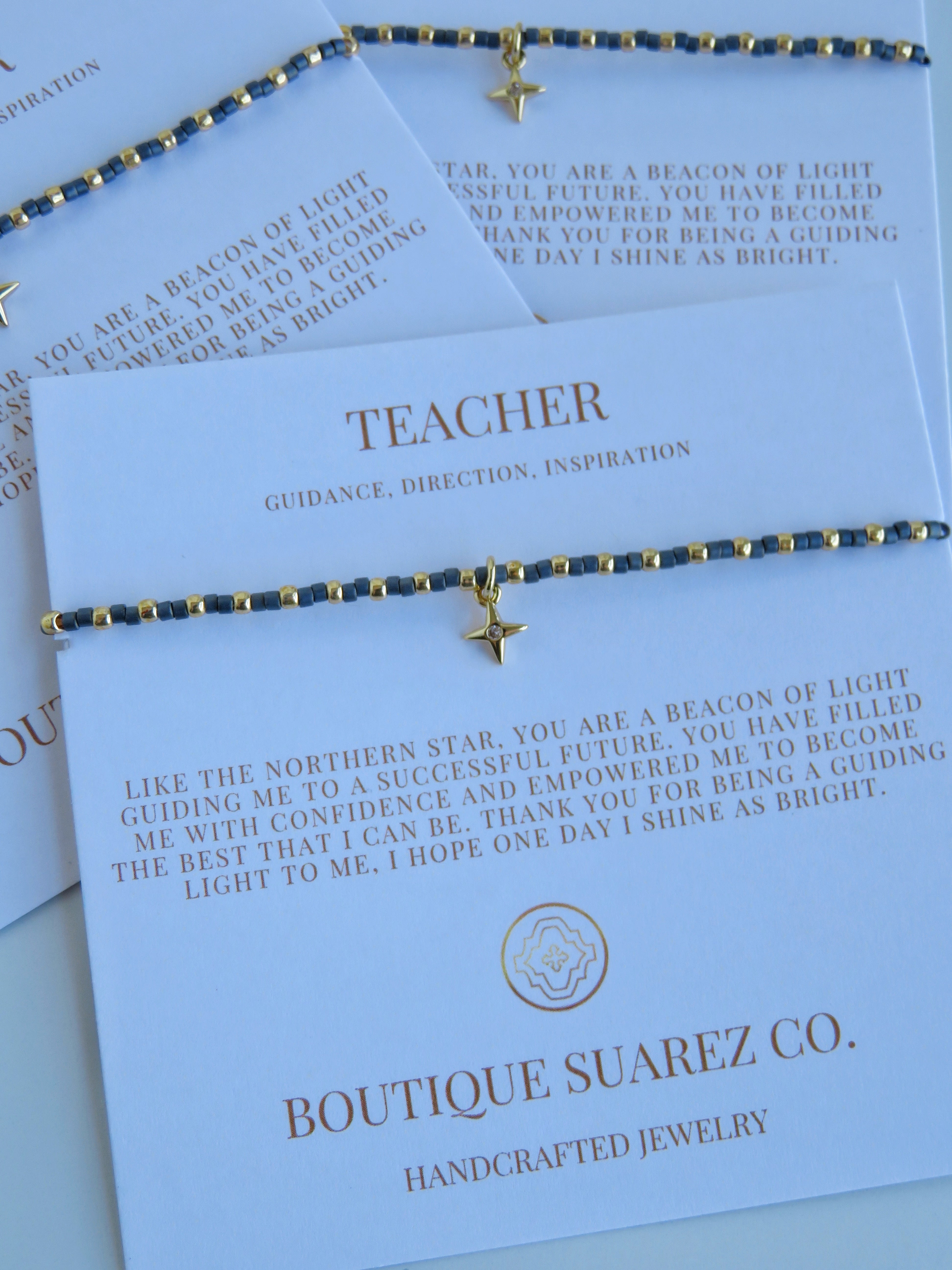 Celebrate Teachers with our Ashlyn Beaded adjustable Northern Star bracelet.