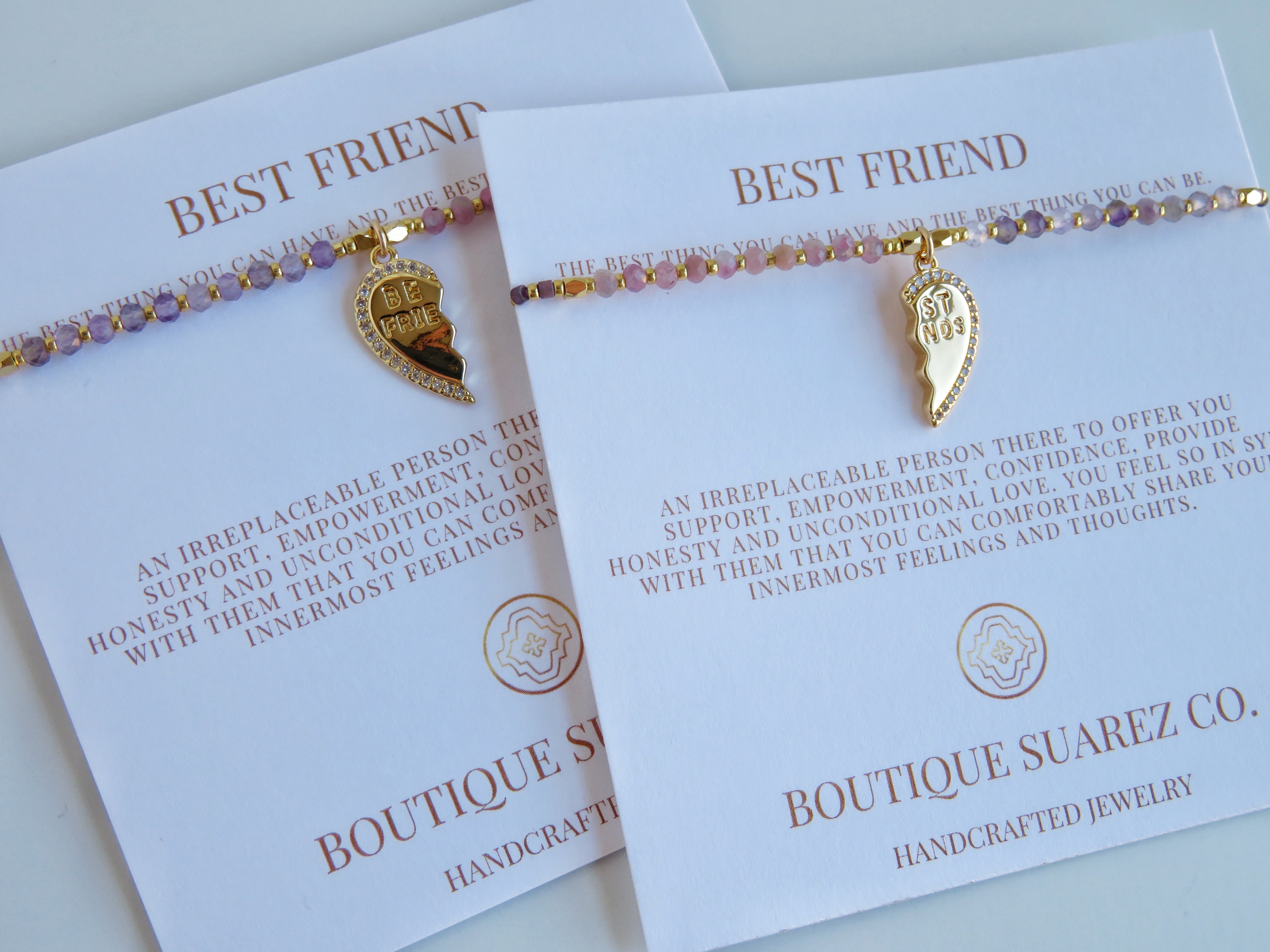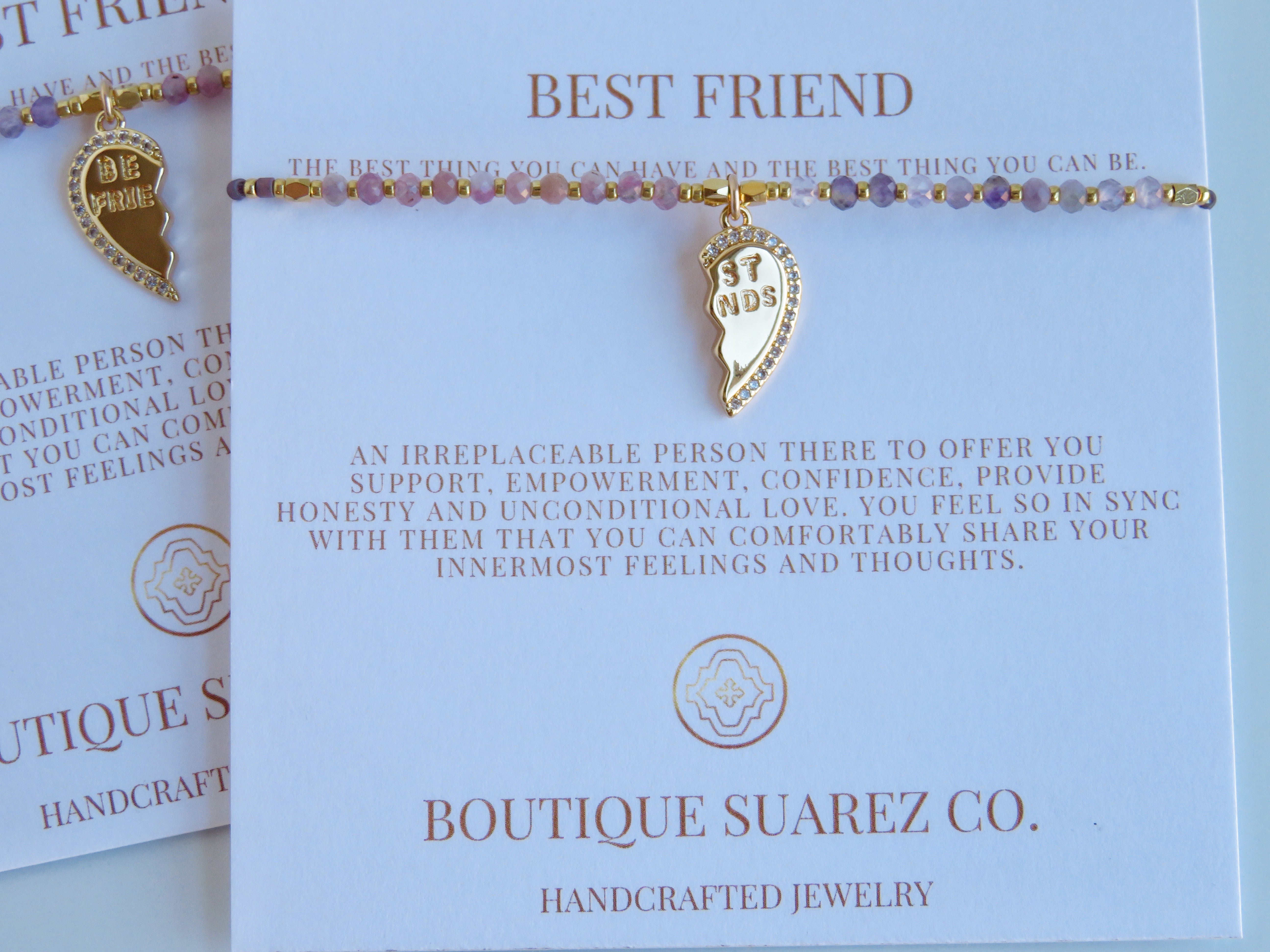 Handcrafted Beaded Best Friend Charm bracelets on our beautiful symbolic card