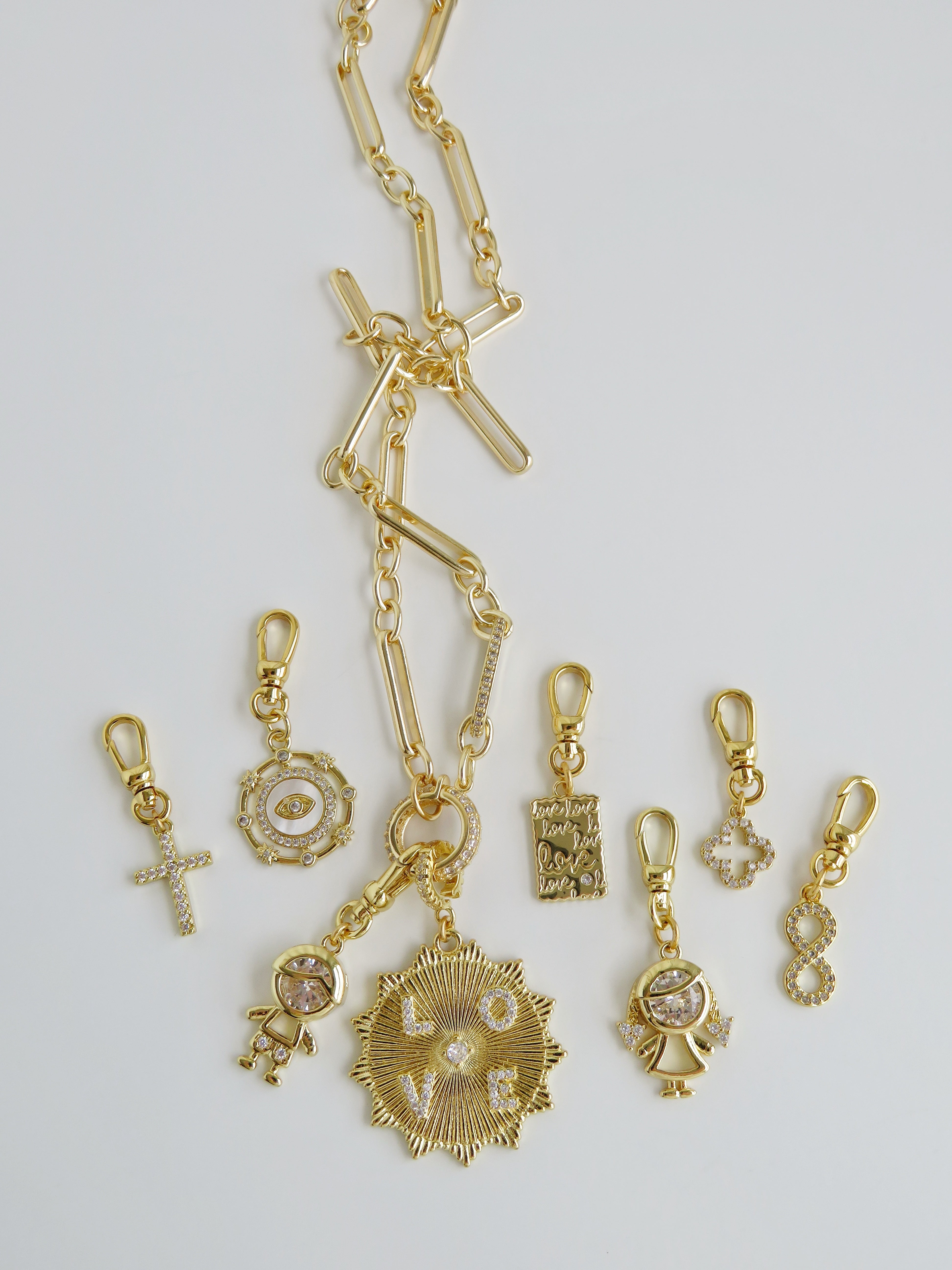 - Diamond Clicker clasp holds the symbolic charms and it also opens so you can switch your symbols and style it differently whenever you wish.
