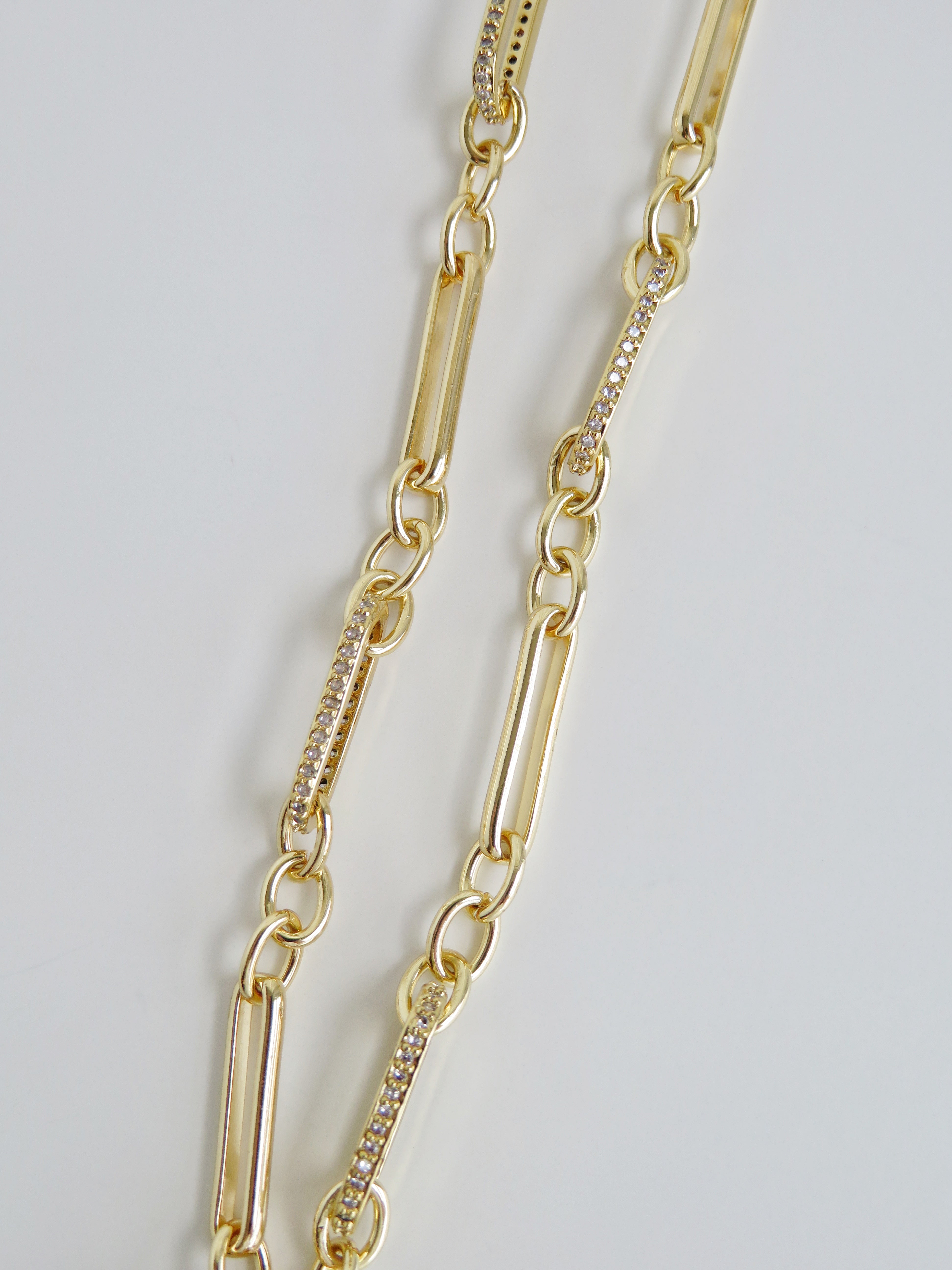 - Handcrafted 16K Gold Layered Figaro Links with Diamond accents