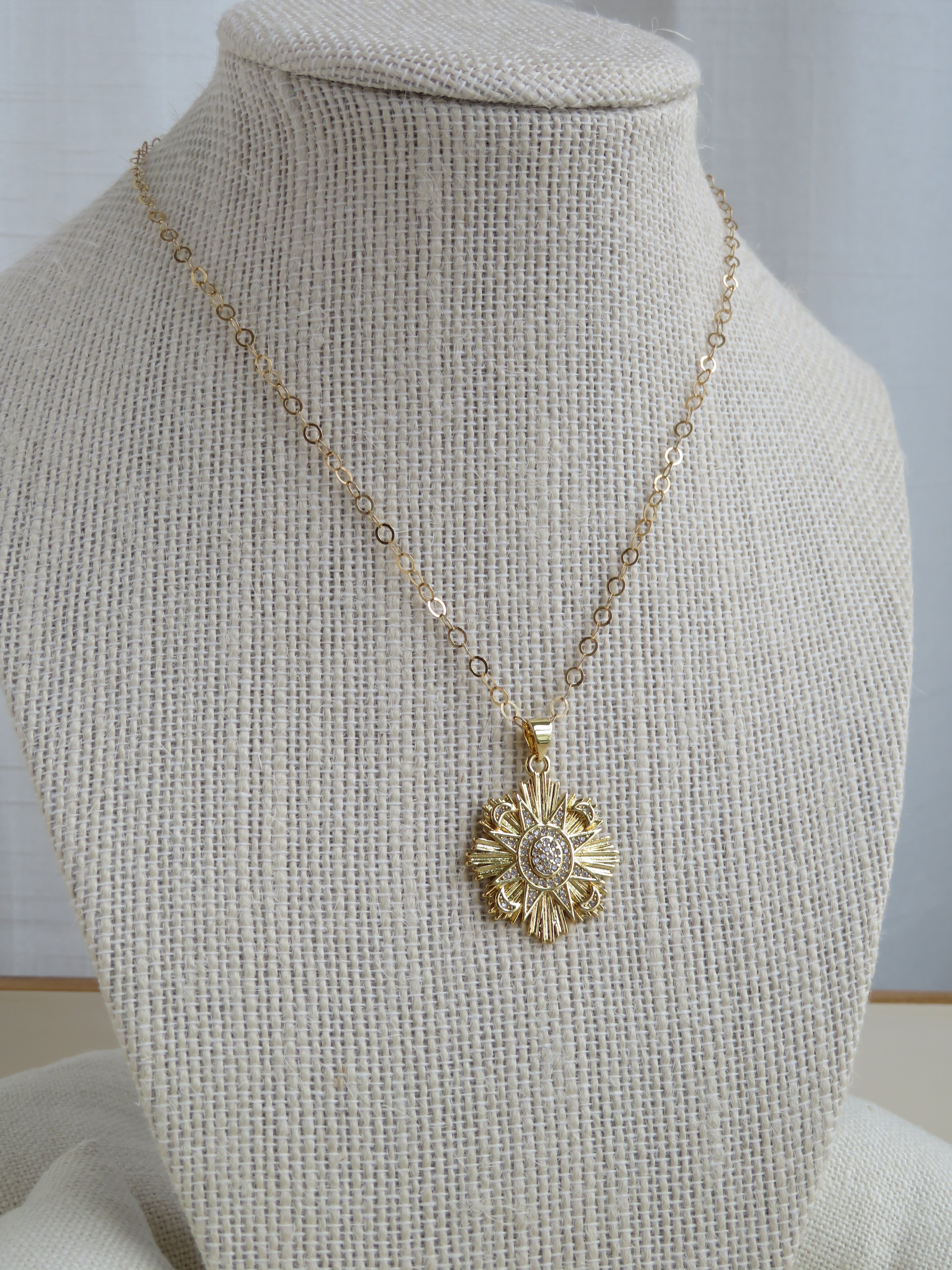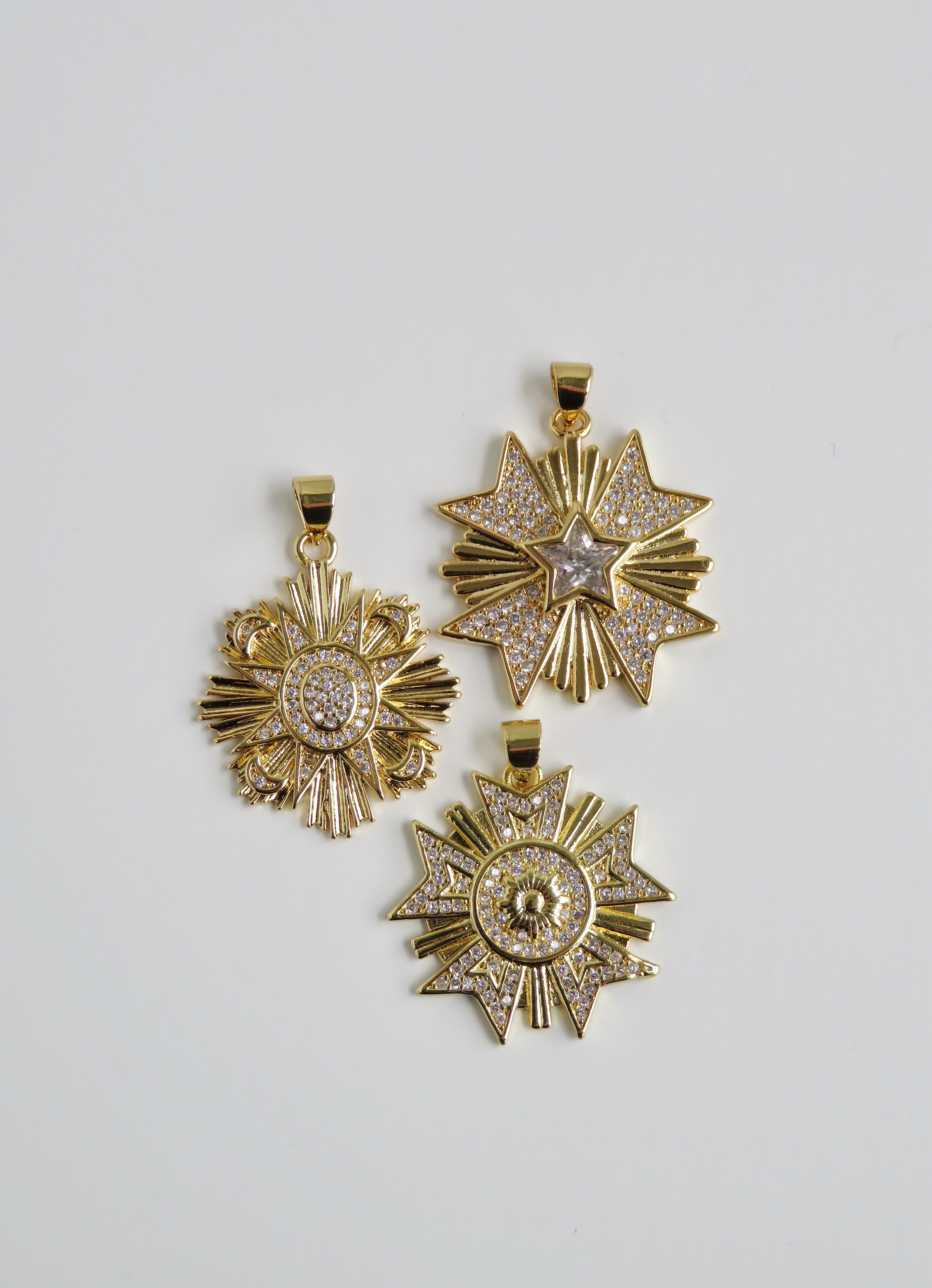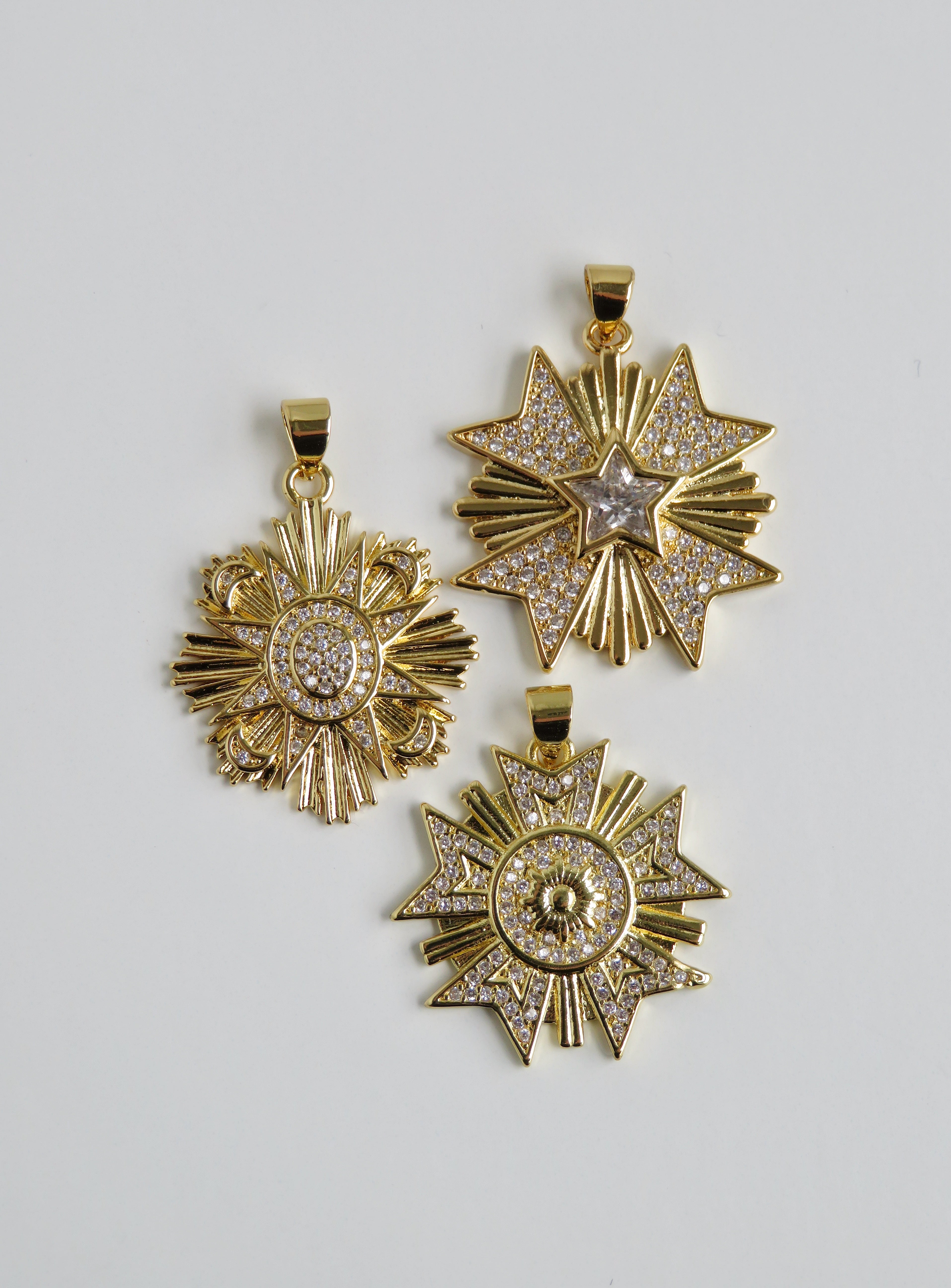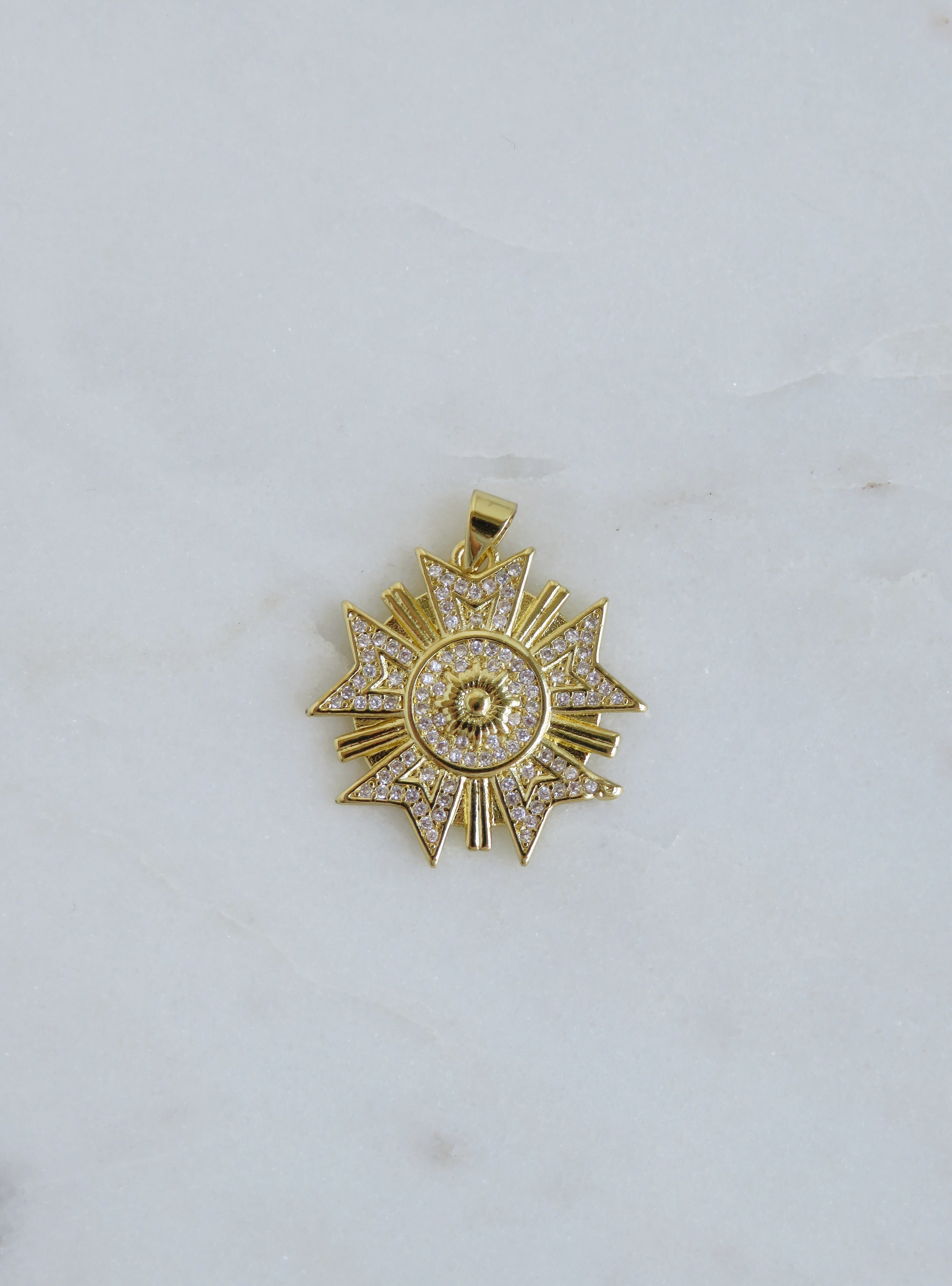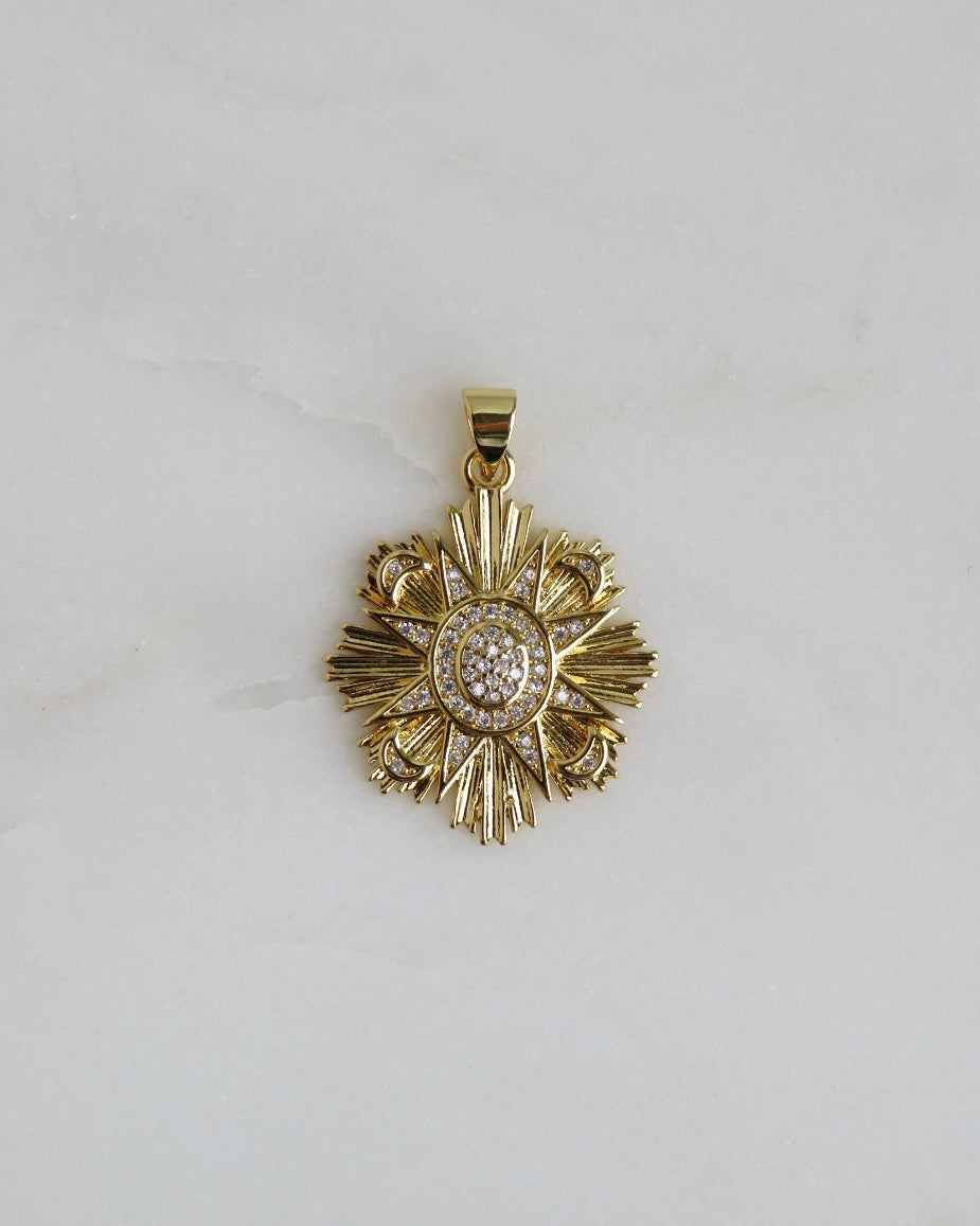 A Beautiful Radiant Sun & Moon Pendant with an Art Deco vibe.