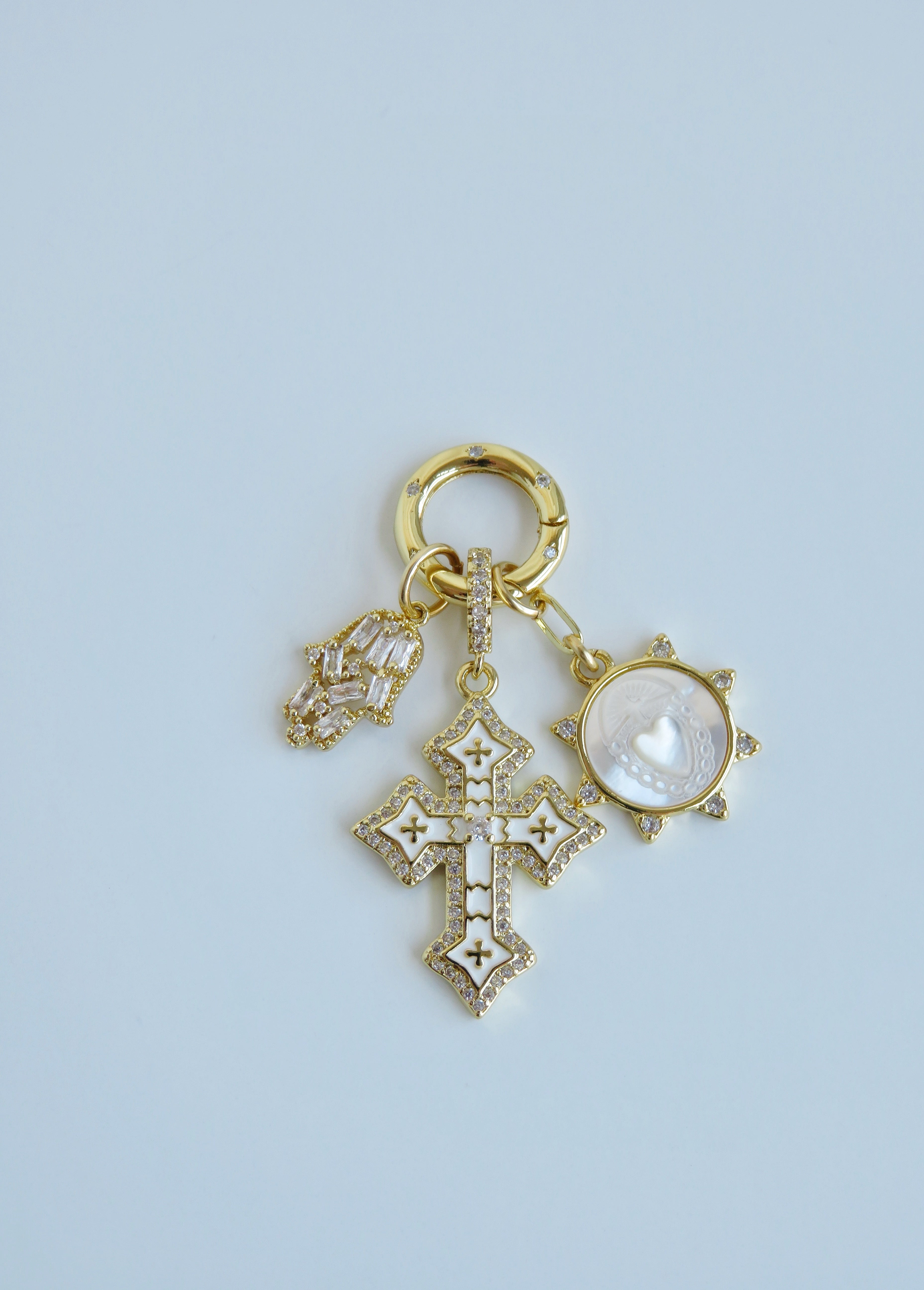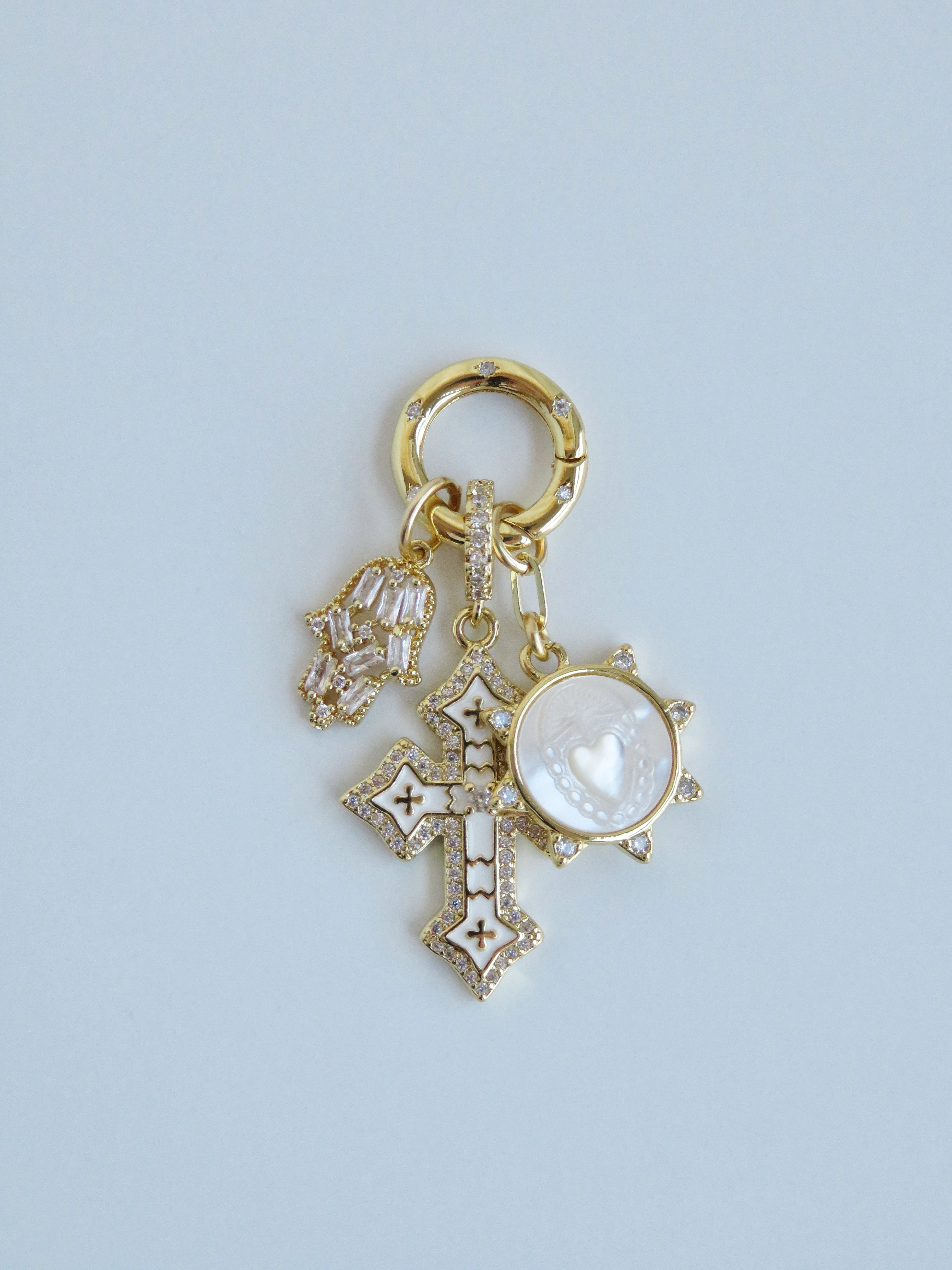 Unlock the power of divine protection with this exquisitely crafted charm cluster.