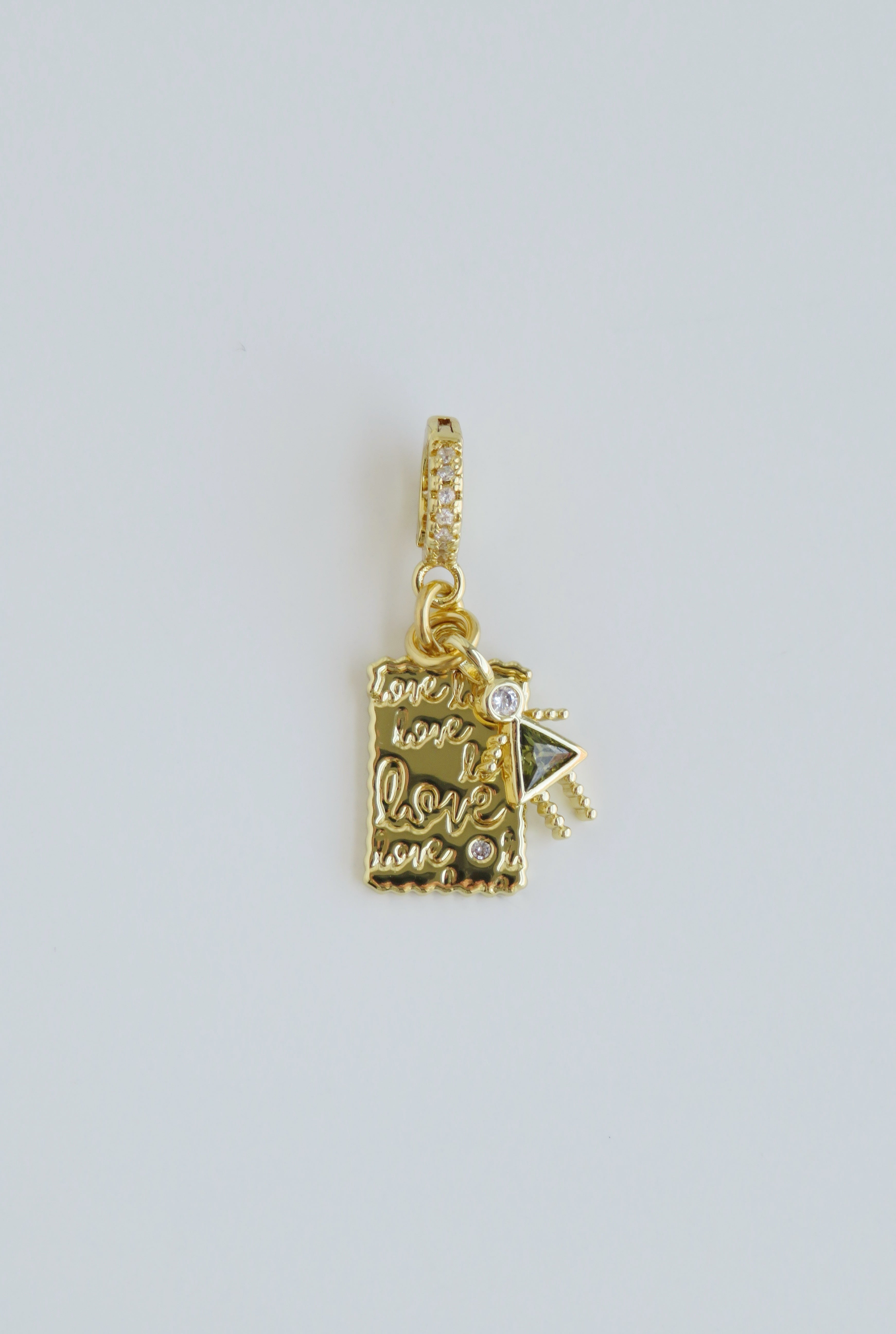 - 10x15mm Love Charm 18k Gold Plated Brass