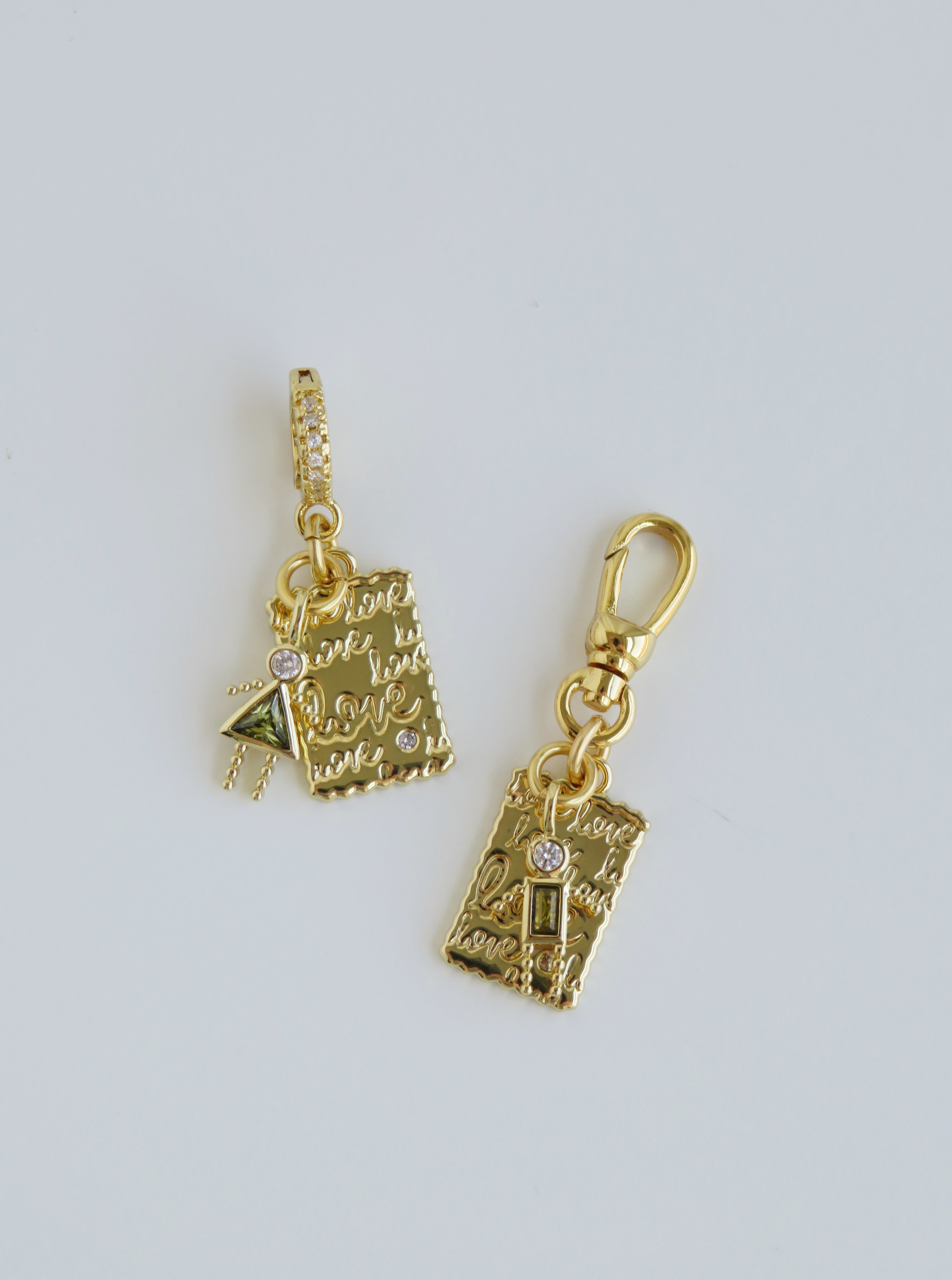 - Olive Green Crystal Boy Charm and Love Tag on a Swivel clasp 17mm x 6mm