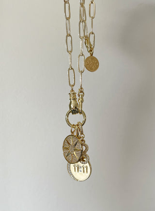 Clip Chain Hamsa Clasp - Bloom Sundial. Angel Wing. Diamond Initial Charm Necklace