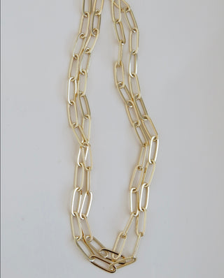 The 18k gold layered Clip Collection is Elegant, Classic & Modern. The 14x5mm Paperclip chain link design styles beautifully on its own or with others.