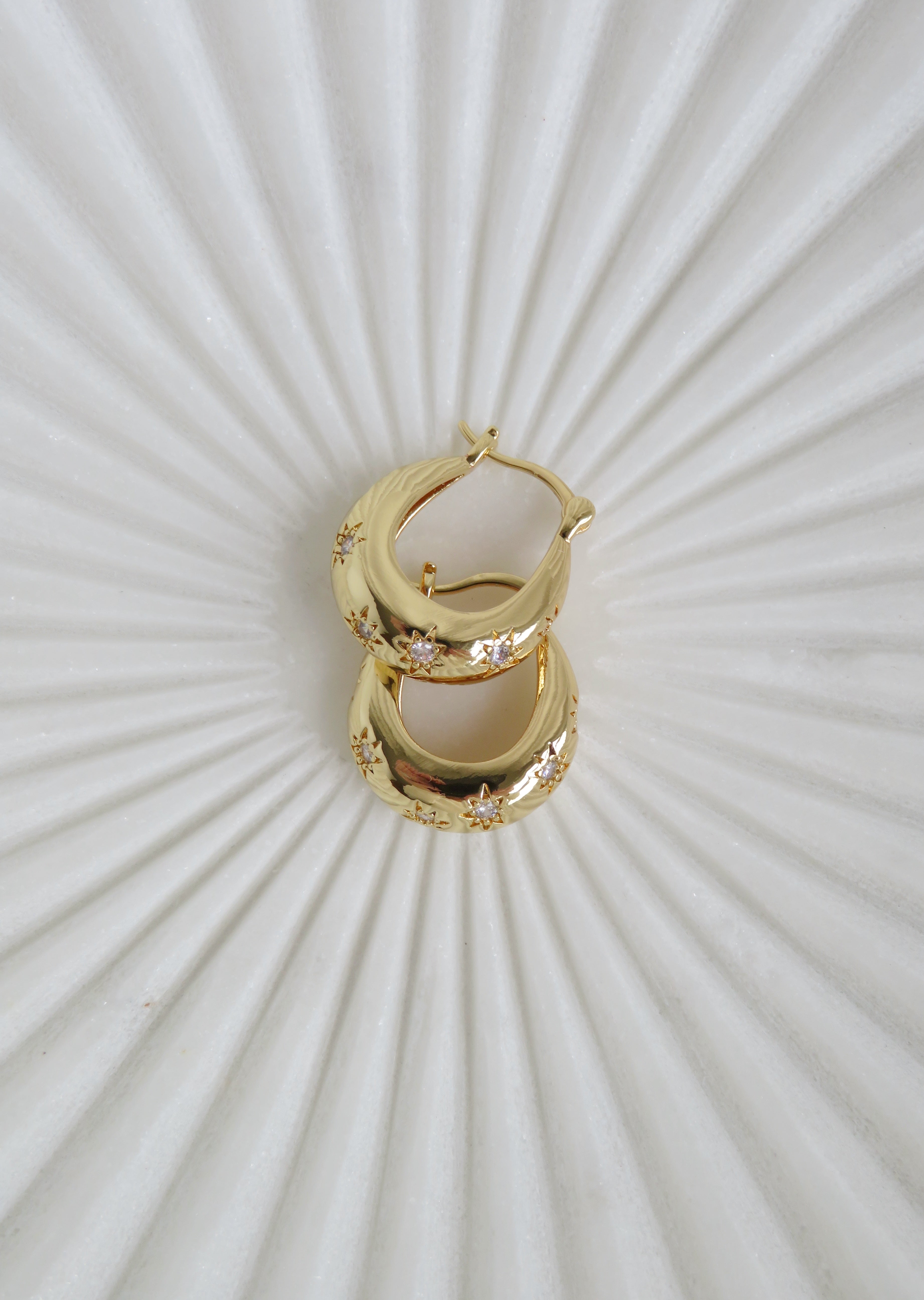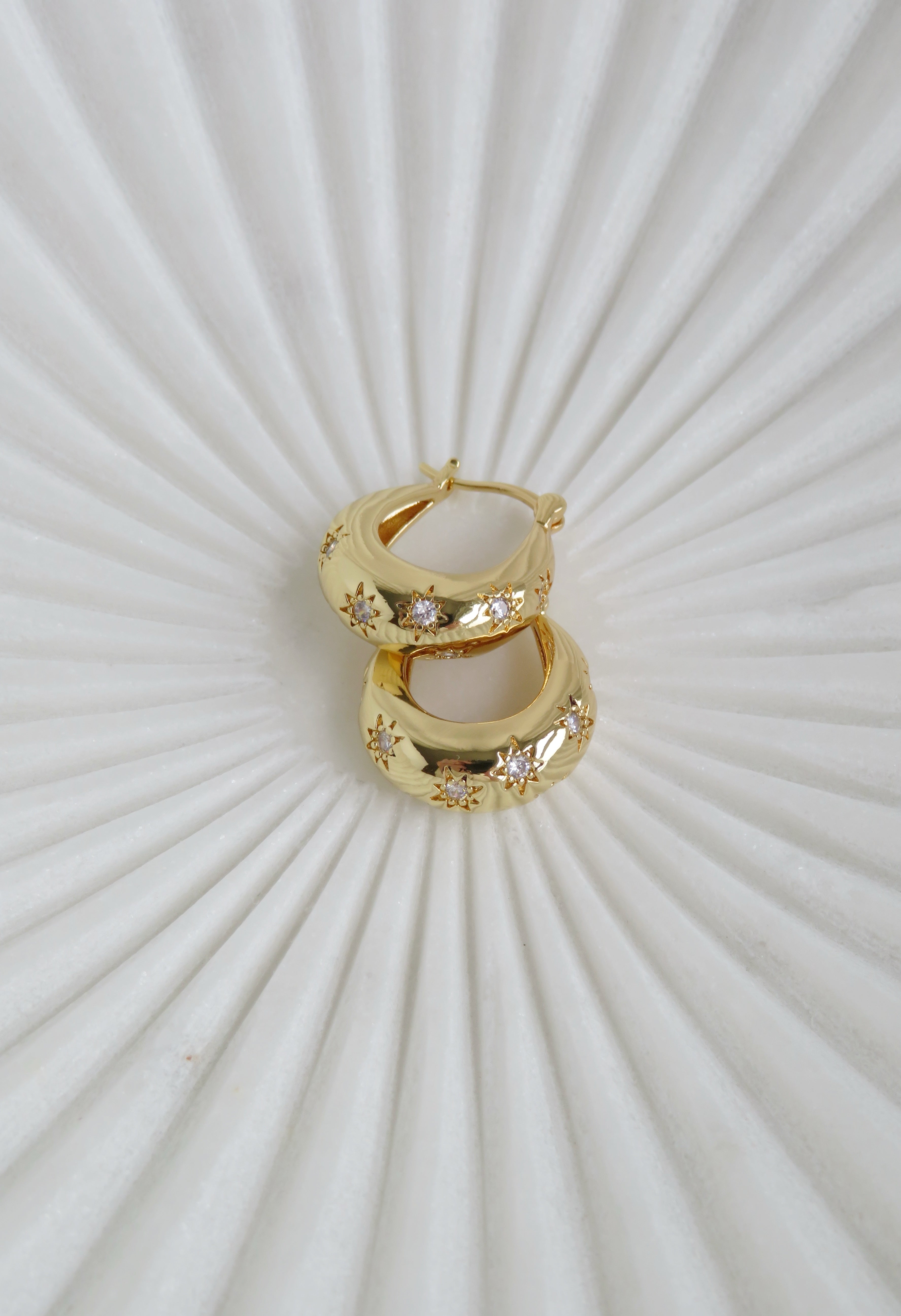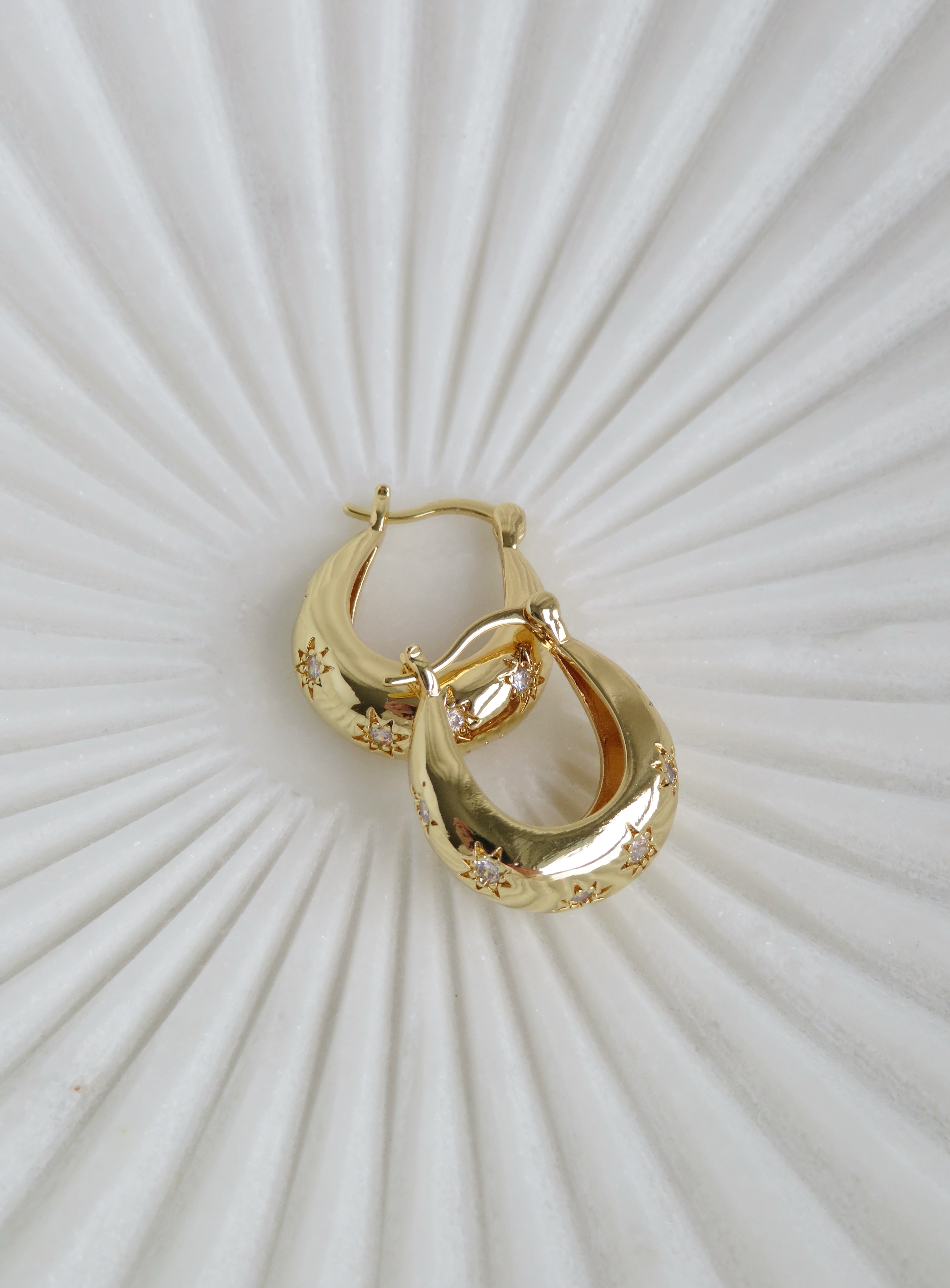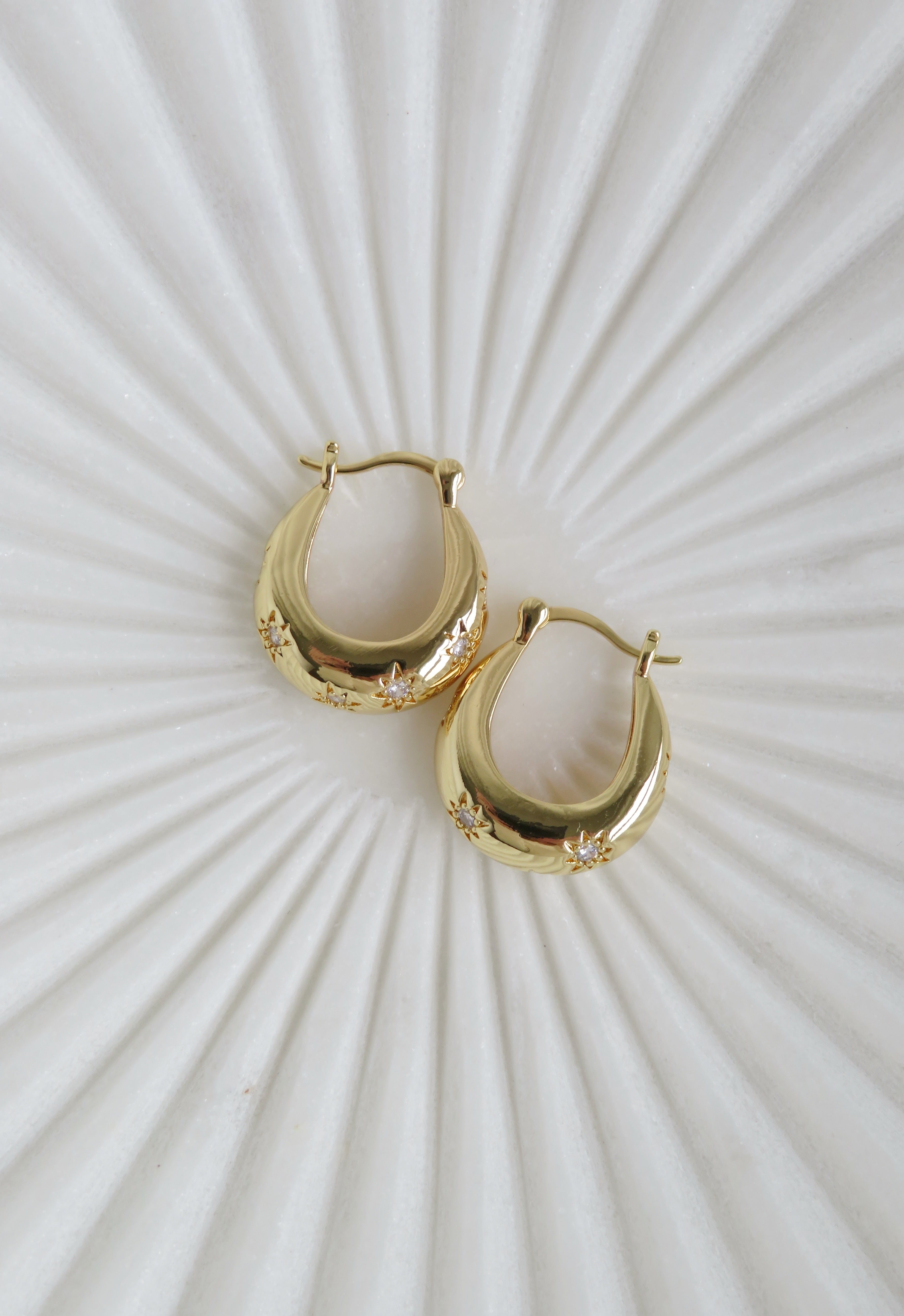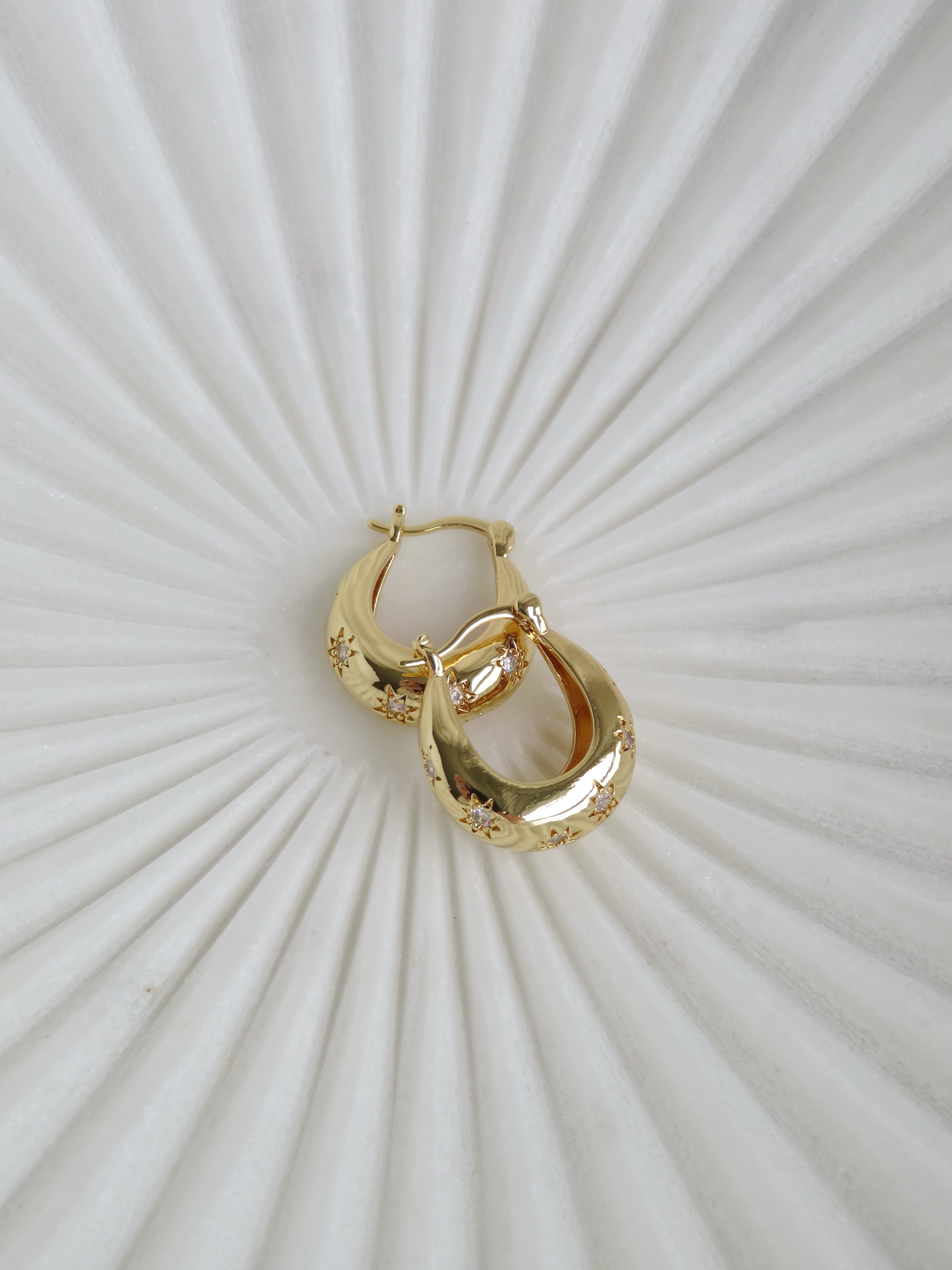 Celestial Oblong Shaped Diamond Domed Hoop Earrings.