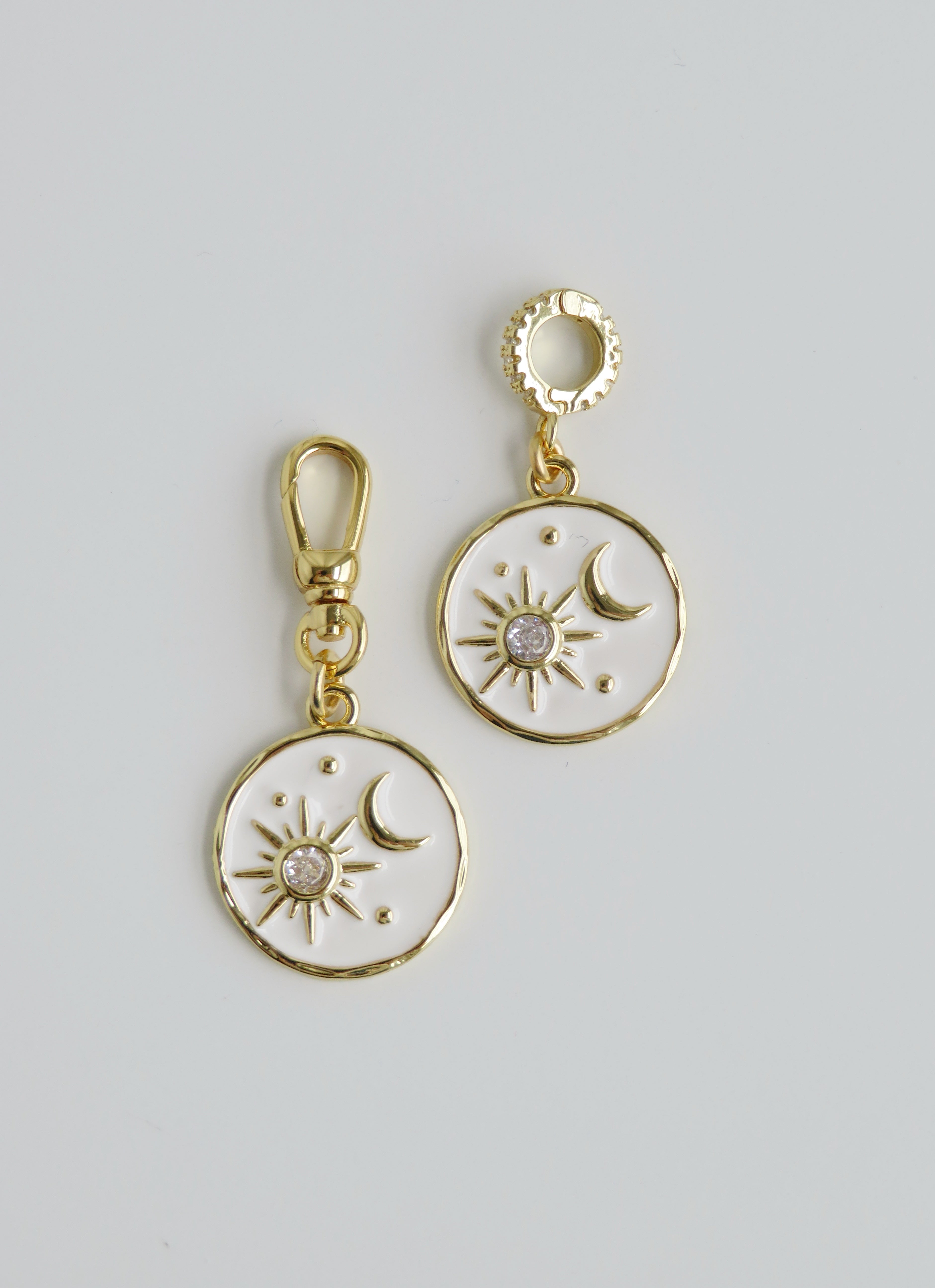 White Enamel Celestial Charm on a diamond or swivel Clasp