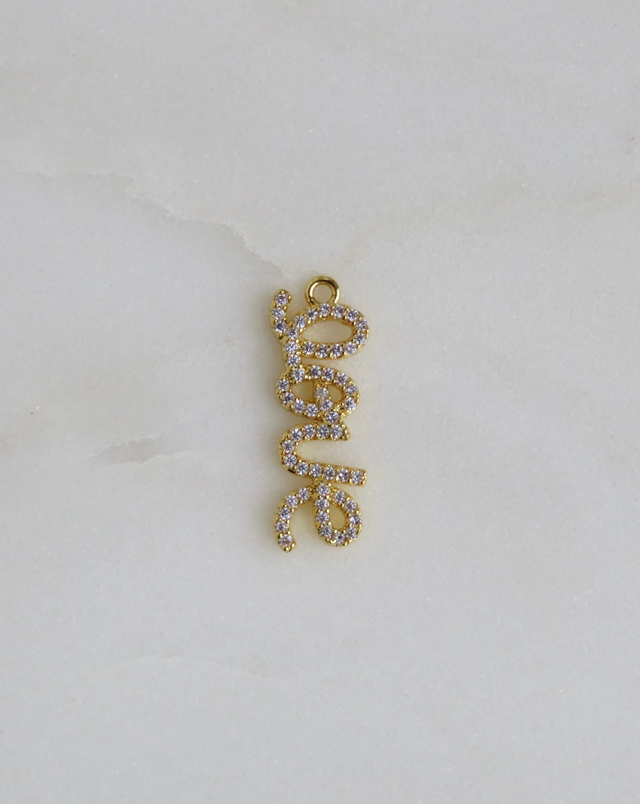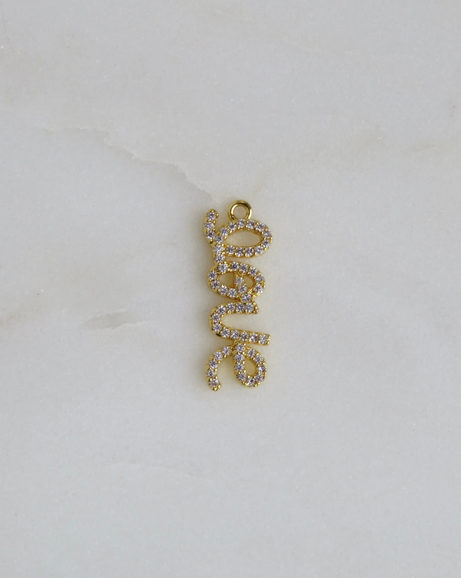 A Romantic Script Micro Pave Diamond Love Charm