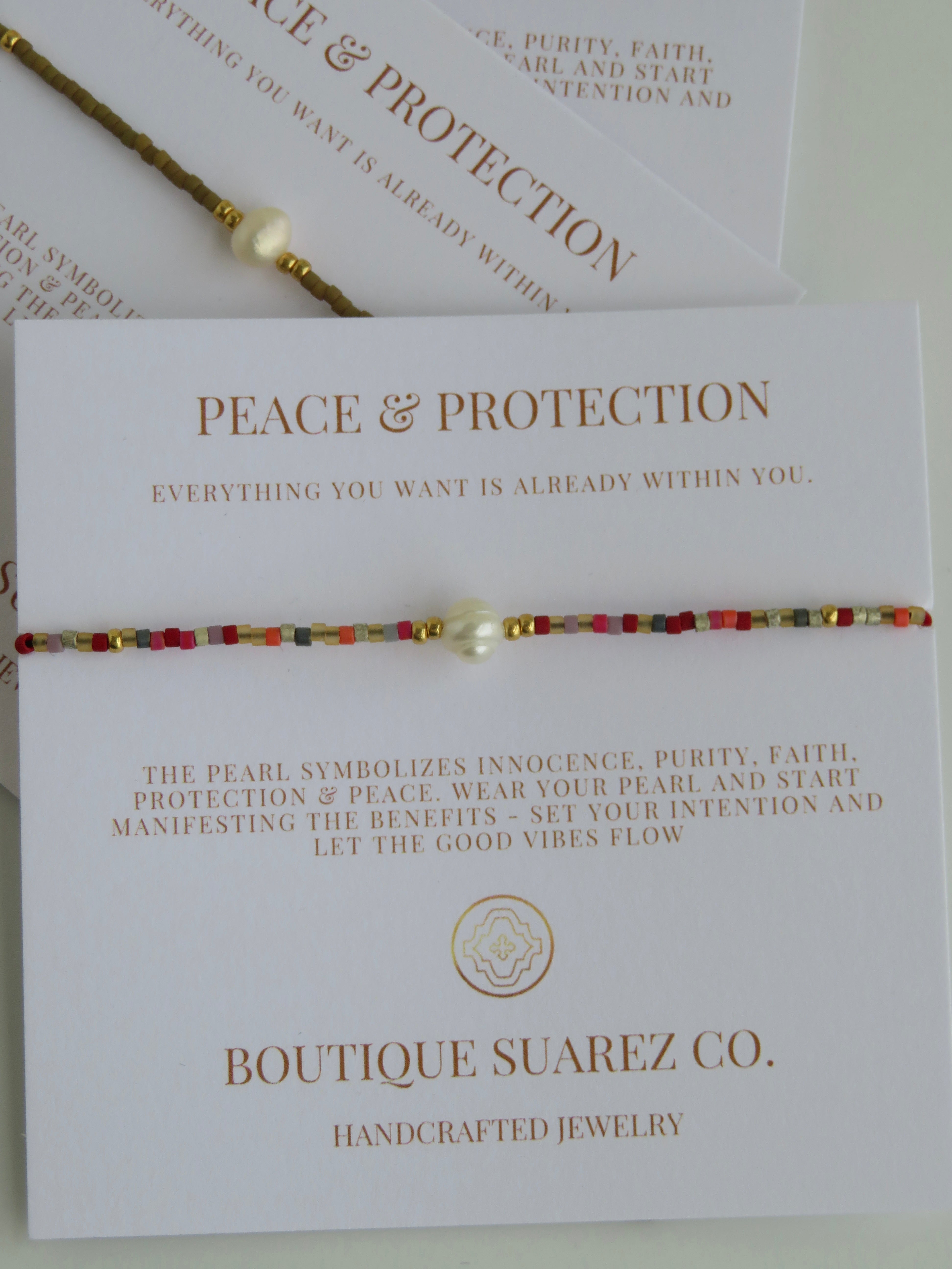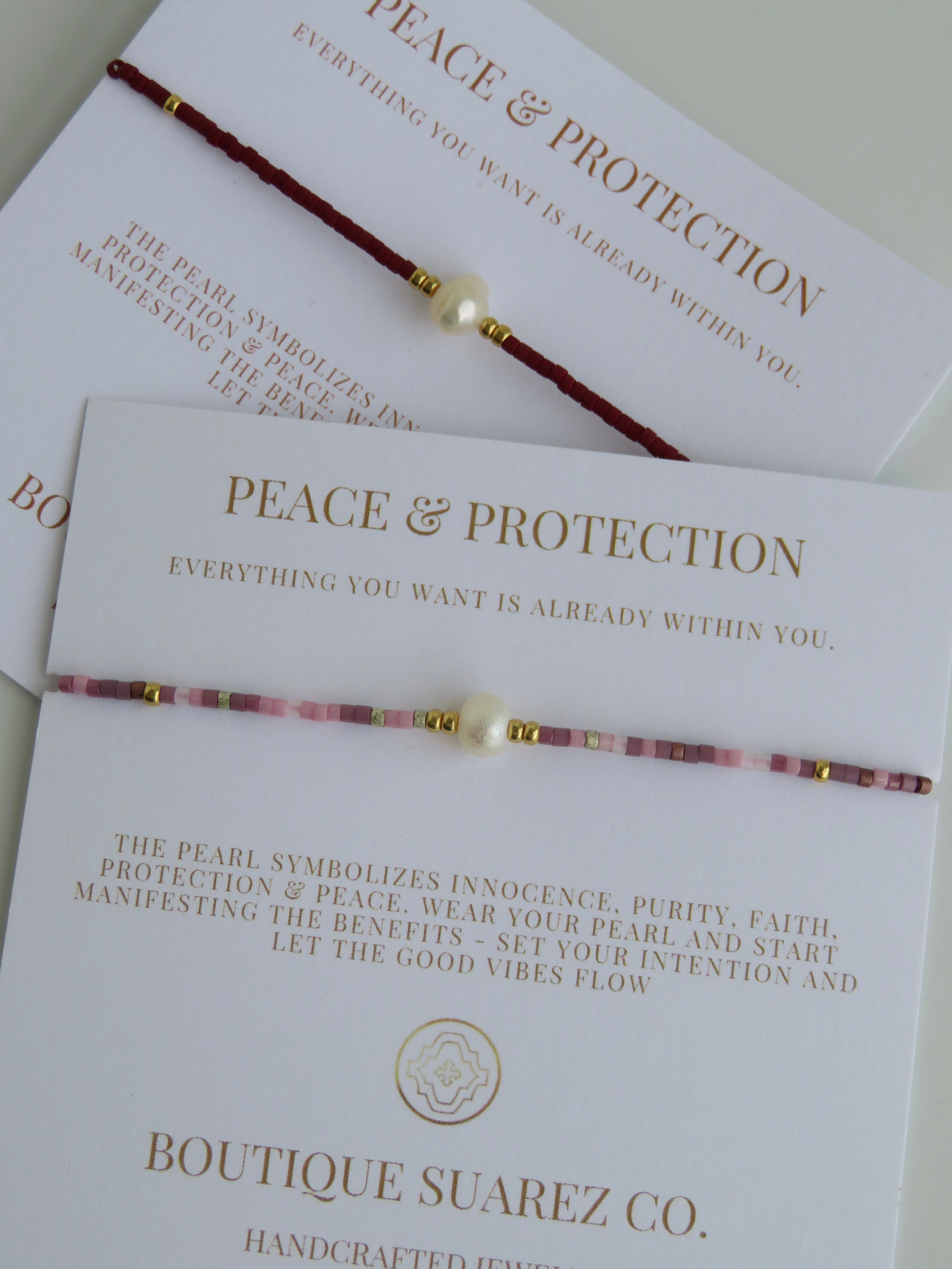Attract Peace & Protection with our handcrafted beaded pearl cord bracelet