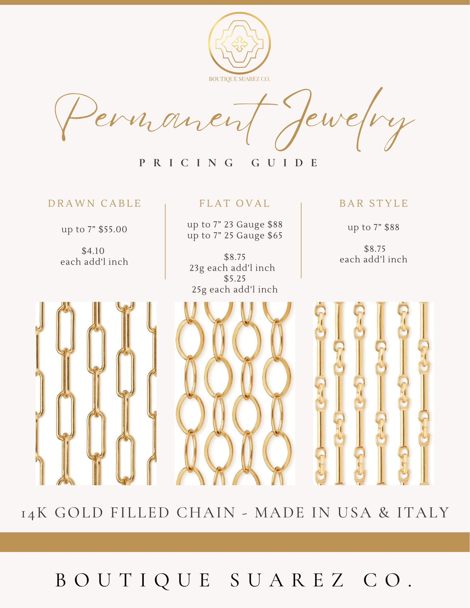 - Once you have ordered I will email you with the email address you have provided on your order. If you would like, you can go ahead and DM me on Instagram @boutiquesuarezjewelry or Email me at info@boutiquesuarezco.com to schedule an Appointment and we can also have a chat about what you would like, bracelet, anklet, necklace, ring etc.