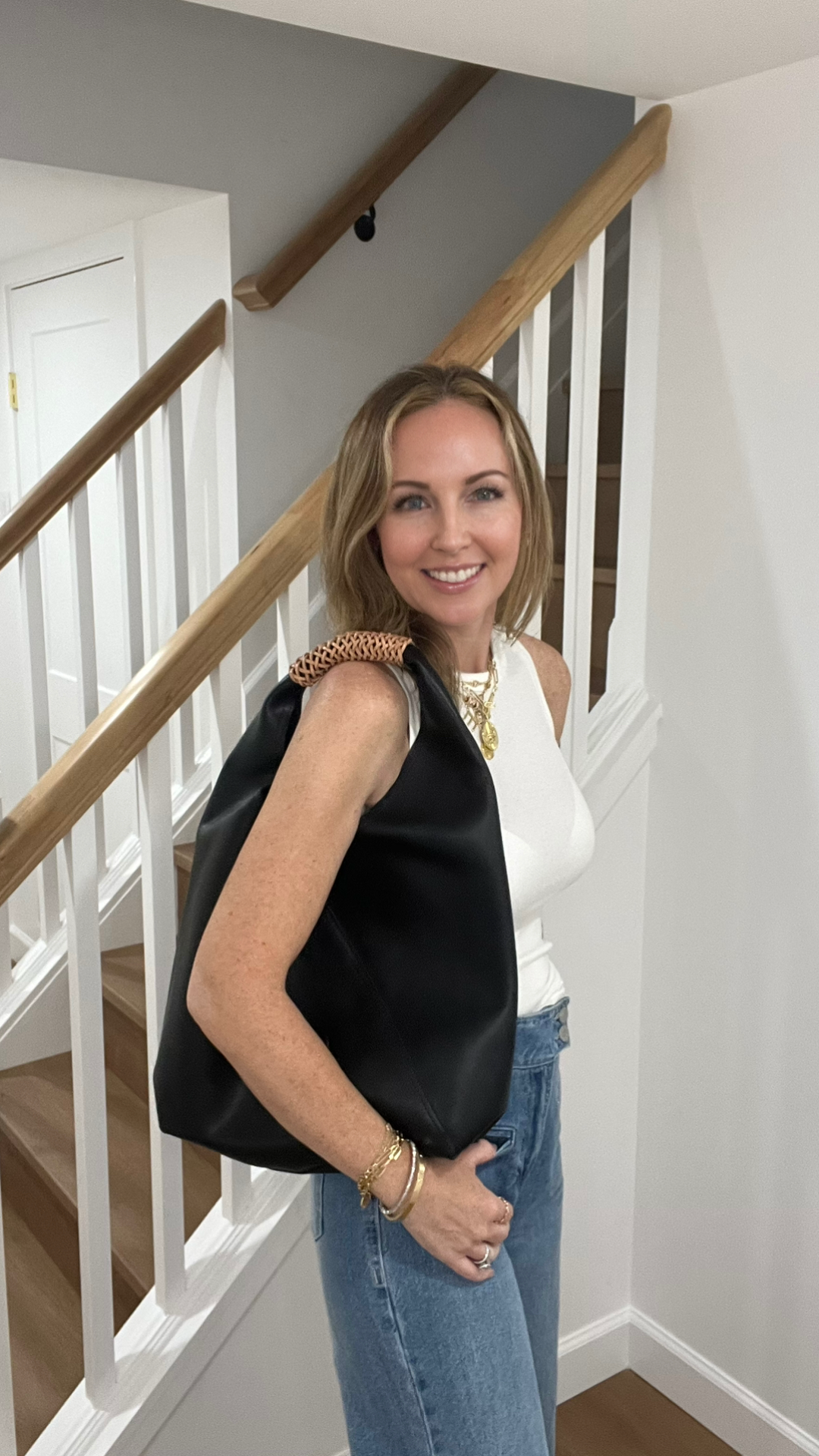 Designed to be a forever classic in your bag collection, this stand-out staple is featured in a stunning leather silhouette and slouchy, relaxed fit with defined braided leather shoulder strap for an added special touch.